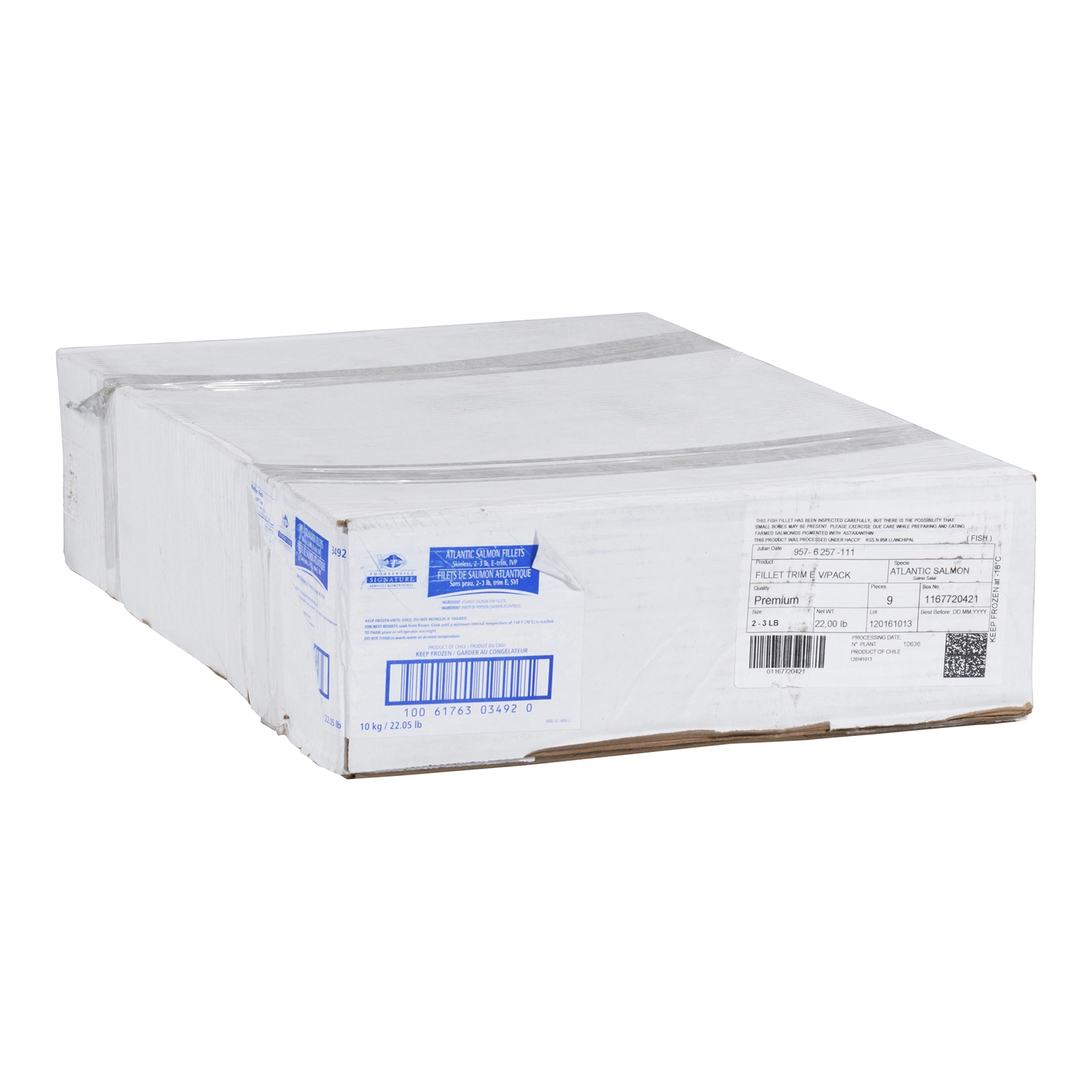 High Liner Signature, 10 kg / 22.05 lb, Our Premium Cut Atlantic Salmon Fillets Skinless, 2-3 lb, E-trim, IVP