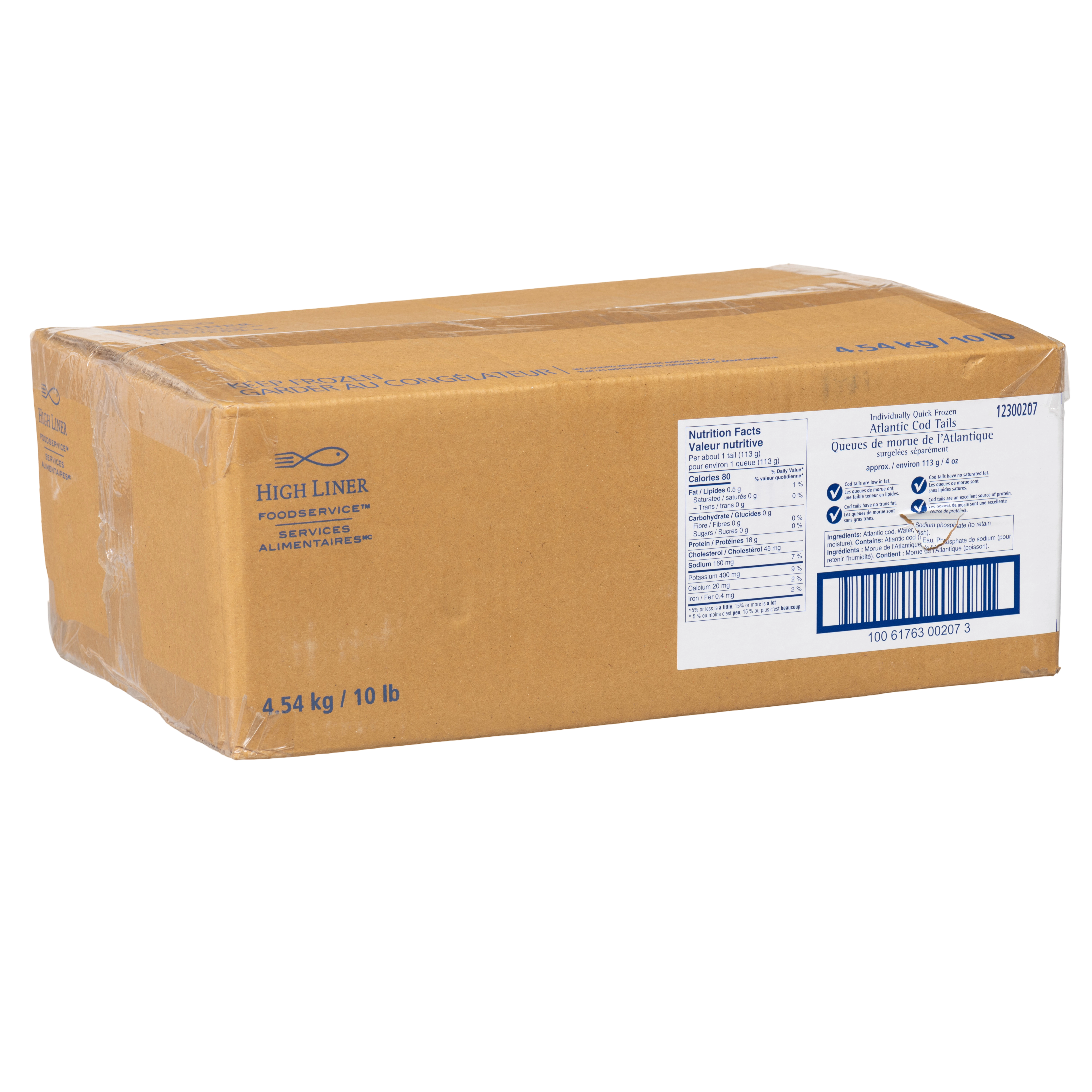 High Liner Foodservice, 5 x 4.54 kg / 10 lb, Individually Quick Frozen Atlantic Cod Tails, approx. 113 g / 4 oz