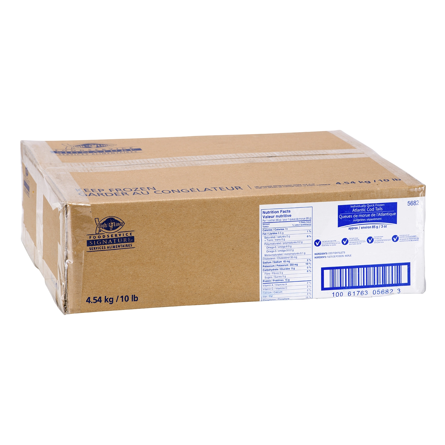 High Liner Foodservice Signature, 4.54 kg / 10 lb, Individually Quick Frozen Atlantic Cod Tails, approx. 85 g / 3 oz