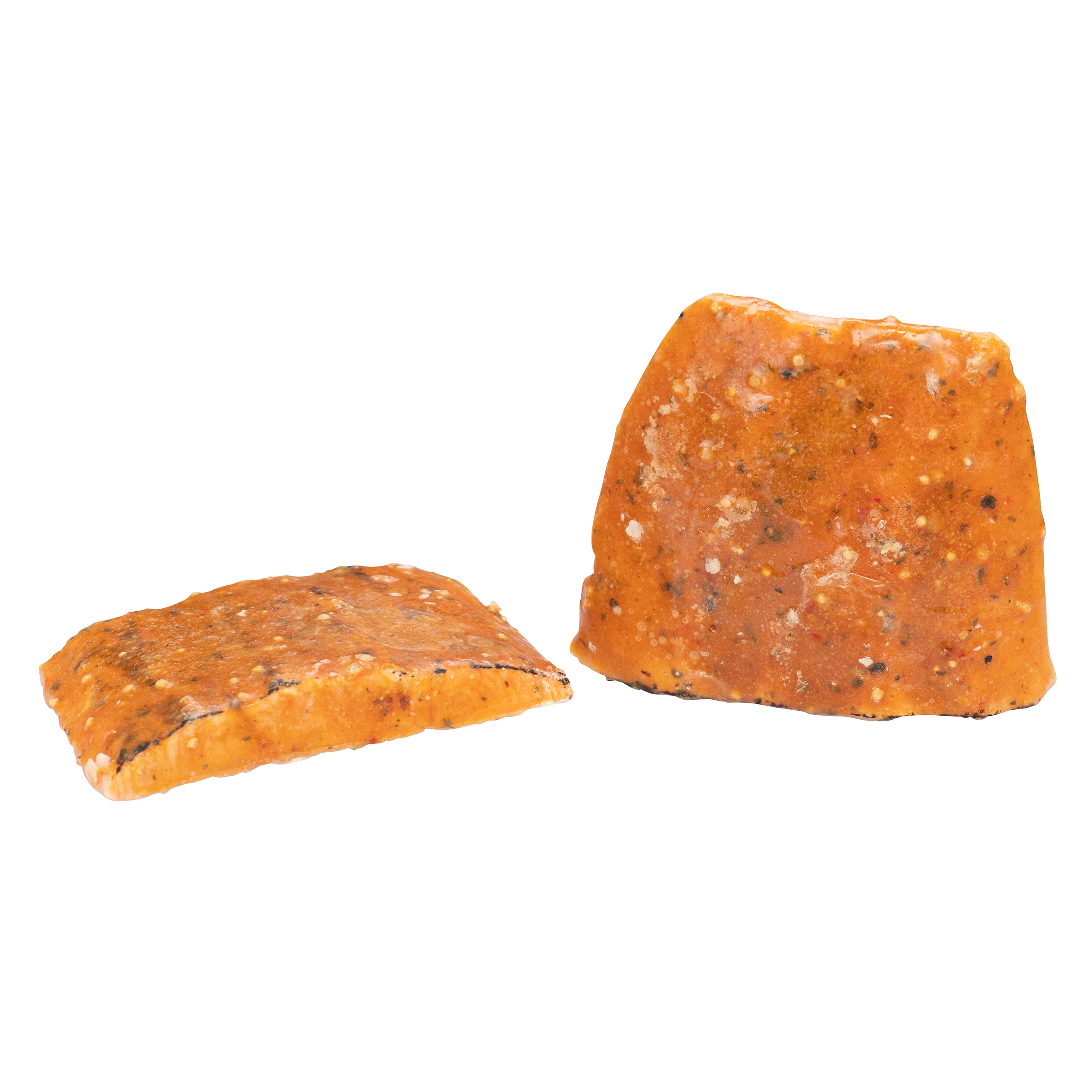 Pink salmon, Water, Concentrated apple juice, Soya oil, Sugars (sugar, maltodextrin, maple syrup, blackstrap molasses), Modified palm oil, Seasonings (spices, onion, garlic, mustard, red bell pepper, tomato, citric acid, parsley), Gelatin, Salt, Natural flavour (applewood smoke, brown sugar, flavour), Sodium phosphate (to retain moisture), Paprika, Modified corn starch, Acacia gum. Contains: Pink salmon (fish), Mustard.