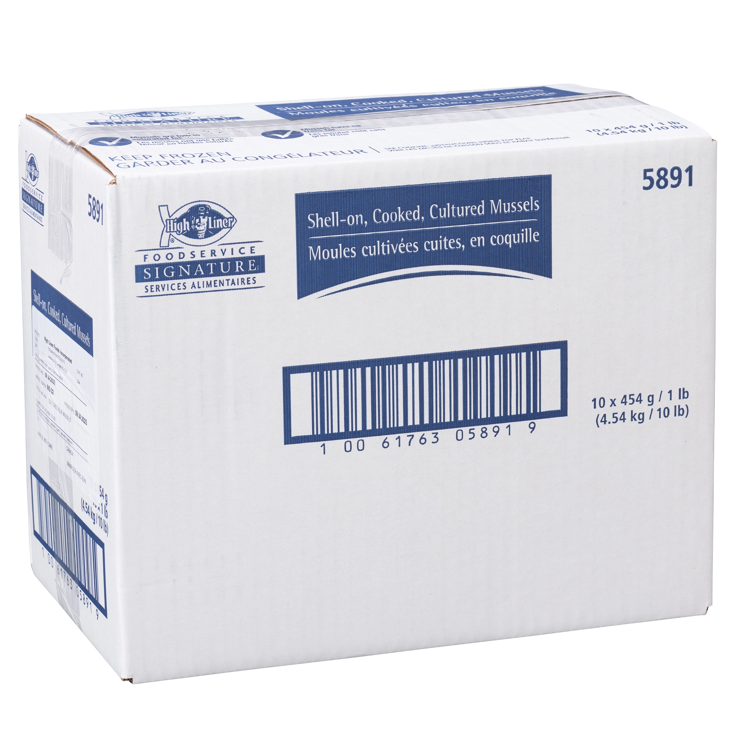 High Liner Foodservice Signature, 4.54 kg / 10 lb (10 x 454 g / 1 lb), Shell-on, Cooked, Cultured Mussels