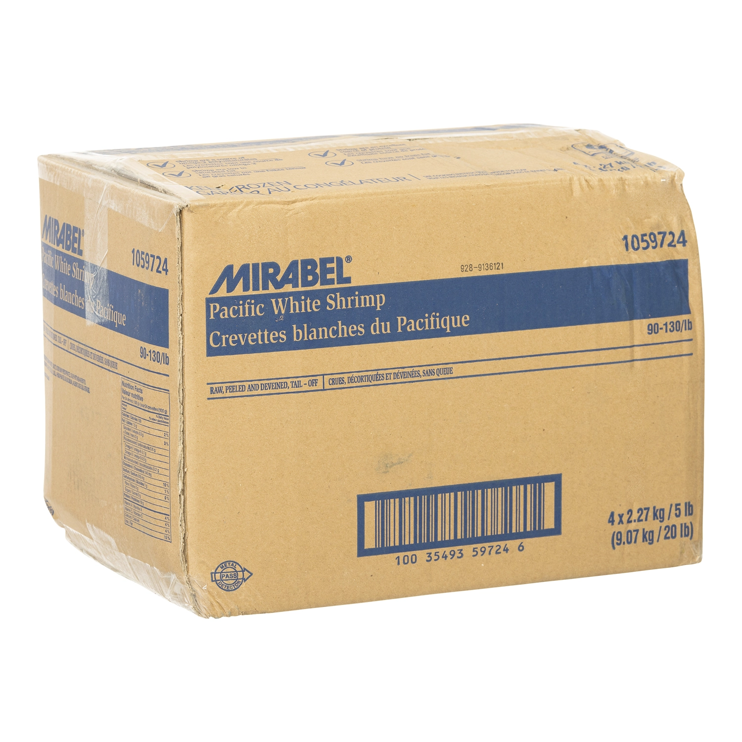 Mirabel, 9.07 kg / 20 lb, Pacific White Shrimp, Raw, Peeled and Deveined, Tail – Off, 90-130/lb