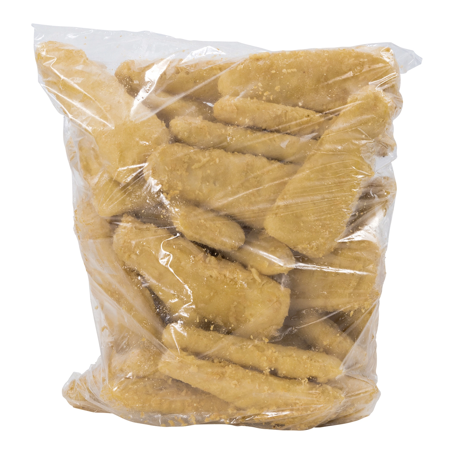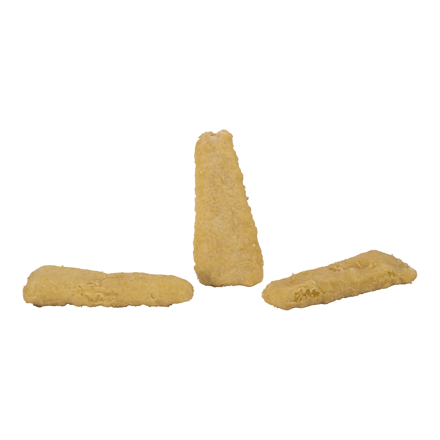 Pollock, Water, Flour (wheat, corn, soy), Canola oil, Toasted wheat crumbs, Modified corn starch, Sugar, Salt, Modified palm oil, Baking powder, Sodium phosphate (to retain moisture), Modified milk ingredients, Sodium aluminum phosphate (leavening acid), Spices, Guar flour. Contains: Pollock (fish), Wheat, Soy, Milk.