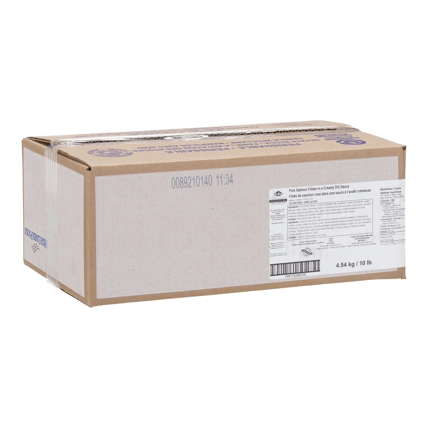 High Liner Foodservice Signature, 4.54 kg / 10 lb, Pink Salmon Fillets in a Creamy Dill Sauce, Gluten Free, Uncooked, approx. 139 g / 5 oz
