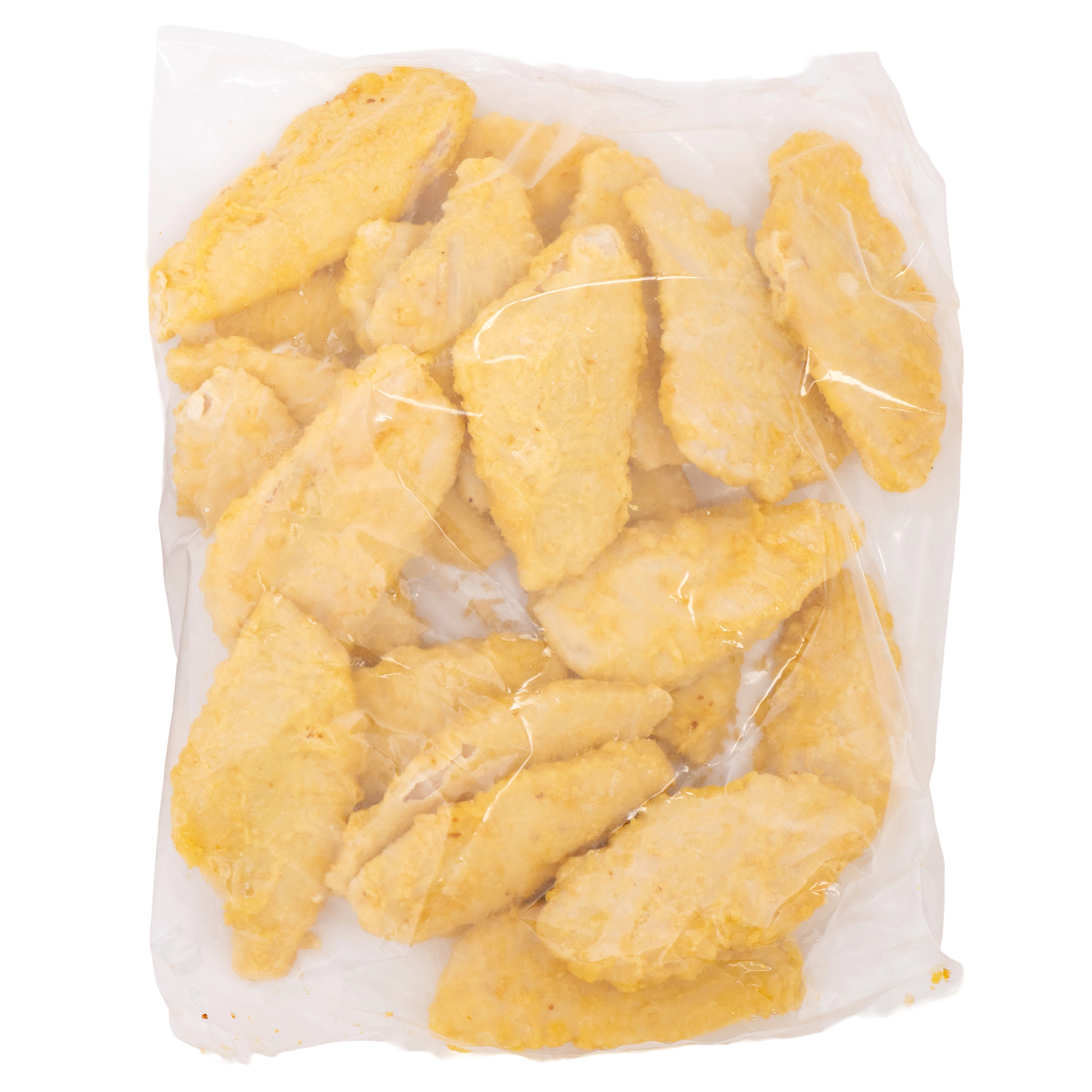 Aiglefin, Farine (blé, maïs), Huile végétale (soya, coton), Bière, Eau, Amidon de maïs modifié, Sel, Essence, Épices, Phosphate d’aluminium et de sodium (acide de levage), Bicarbonate de soude, Sucres (sucre, dextrose). Contient : Aiglefin (poisson), Blé, Orge.