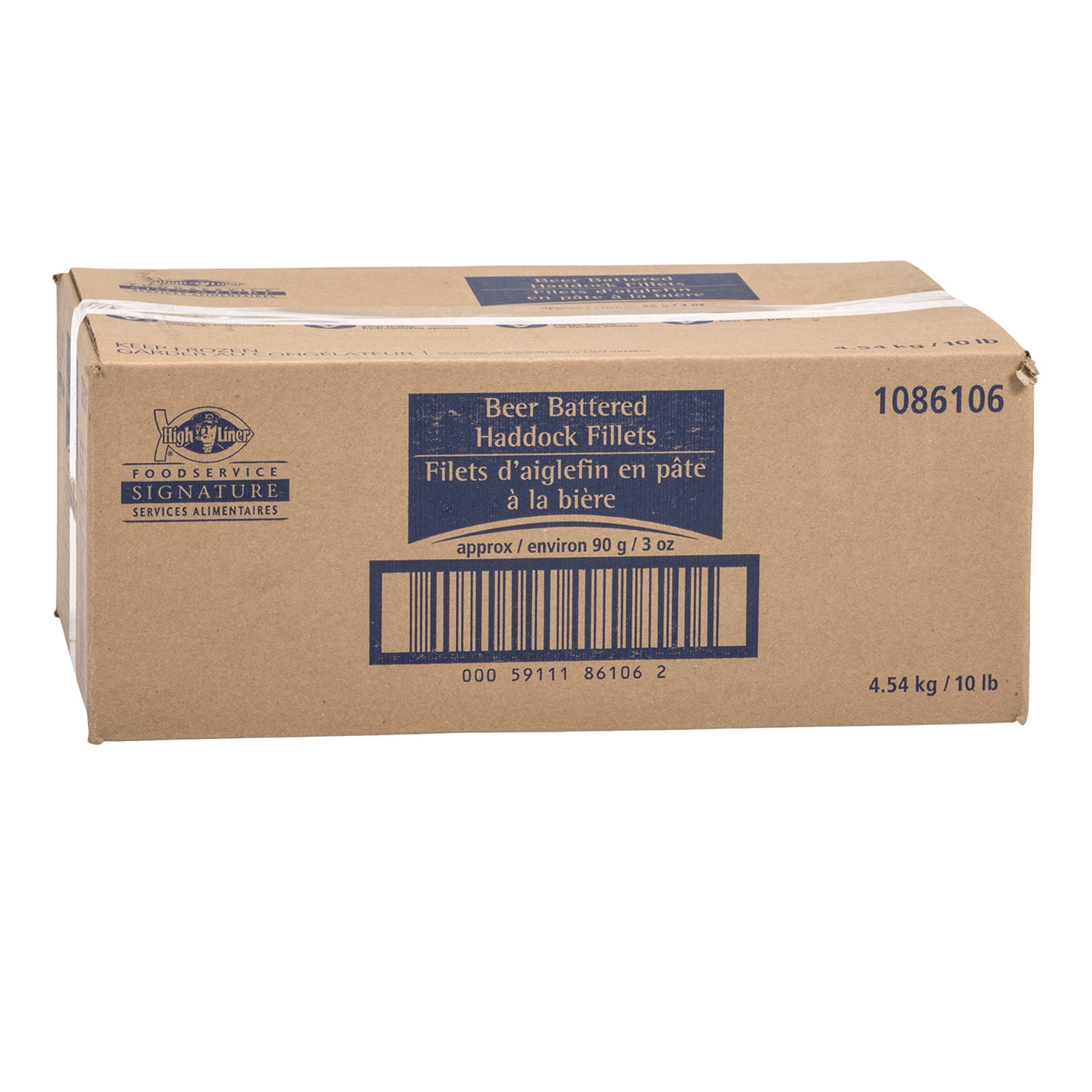 High Liner Services Alimentaires, 4.54 kg / 10 lb, Filets d'aiglefin en pâte à la bière, environ 90 g / 3 oz