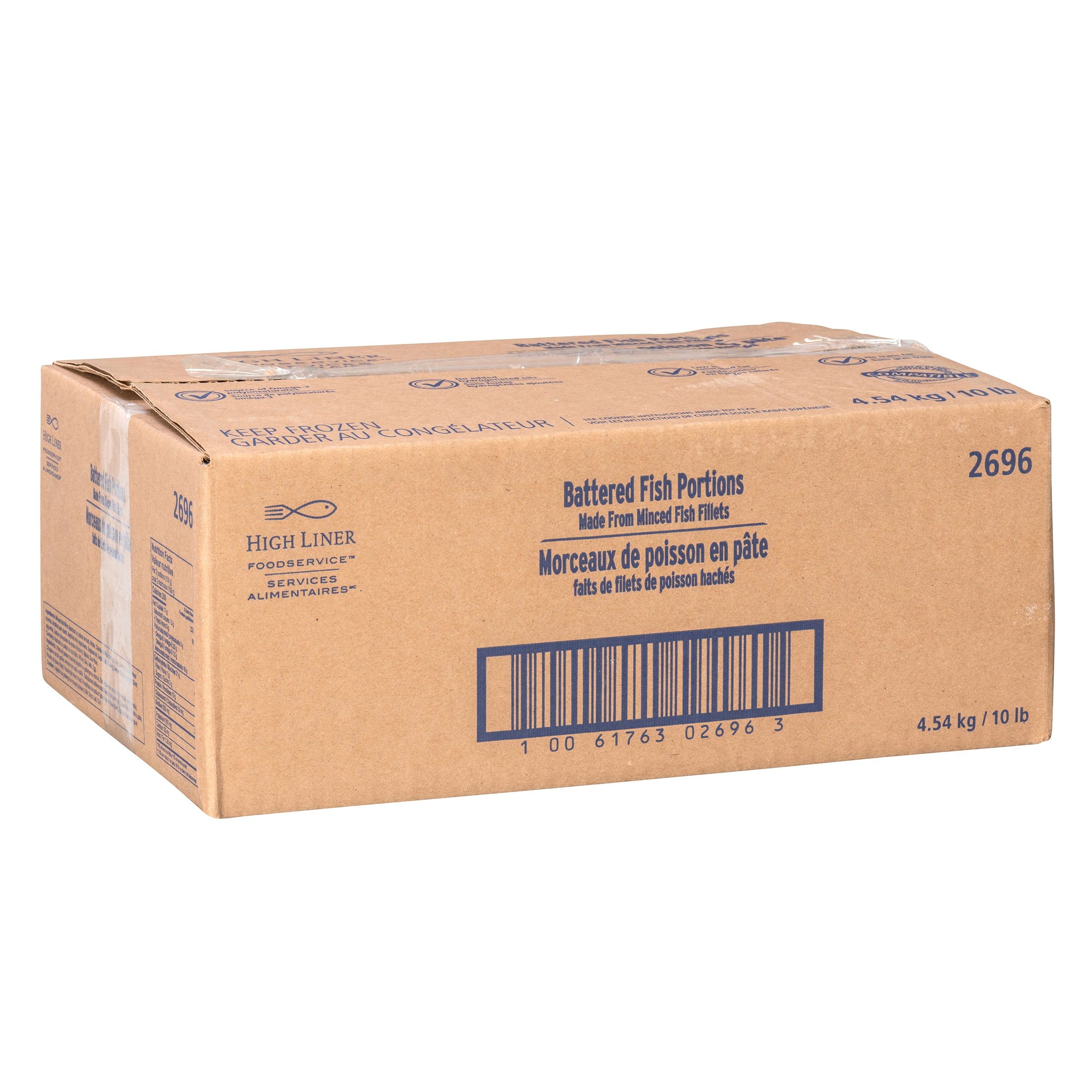 High Liner Services Alimentaires Morceaux de poisson en pâte faits de filets de poisson hachés sont une option délicieusement abordable à ajouter au menu. De coupe triangulaire, ils sont faits d’un mélange de filets hachés d’aiglefin, de goberge ou de morue de première qualité et recouverts d’une pâte dorée, légère et spécialement assaisonnée. Ces filets croustillants de poisson à chair blanche, tendre et moelleuse feront le bonheur des clients de tous âges. Surgelés séparément, ils se cuisent rapidement au four ou en grande friture en de délicieux filets bien dorés, avec pratiquement aucune préparation, et sont compatibles avec le montage froid et la remise en température.