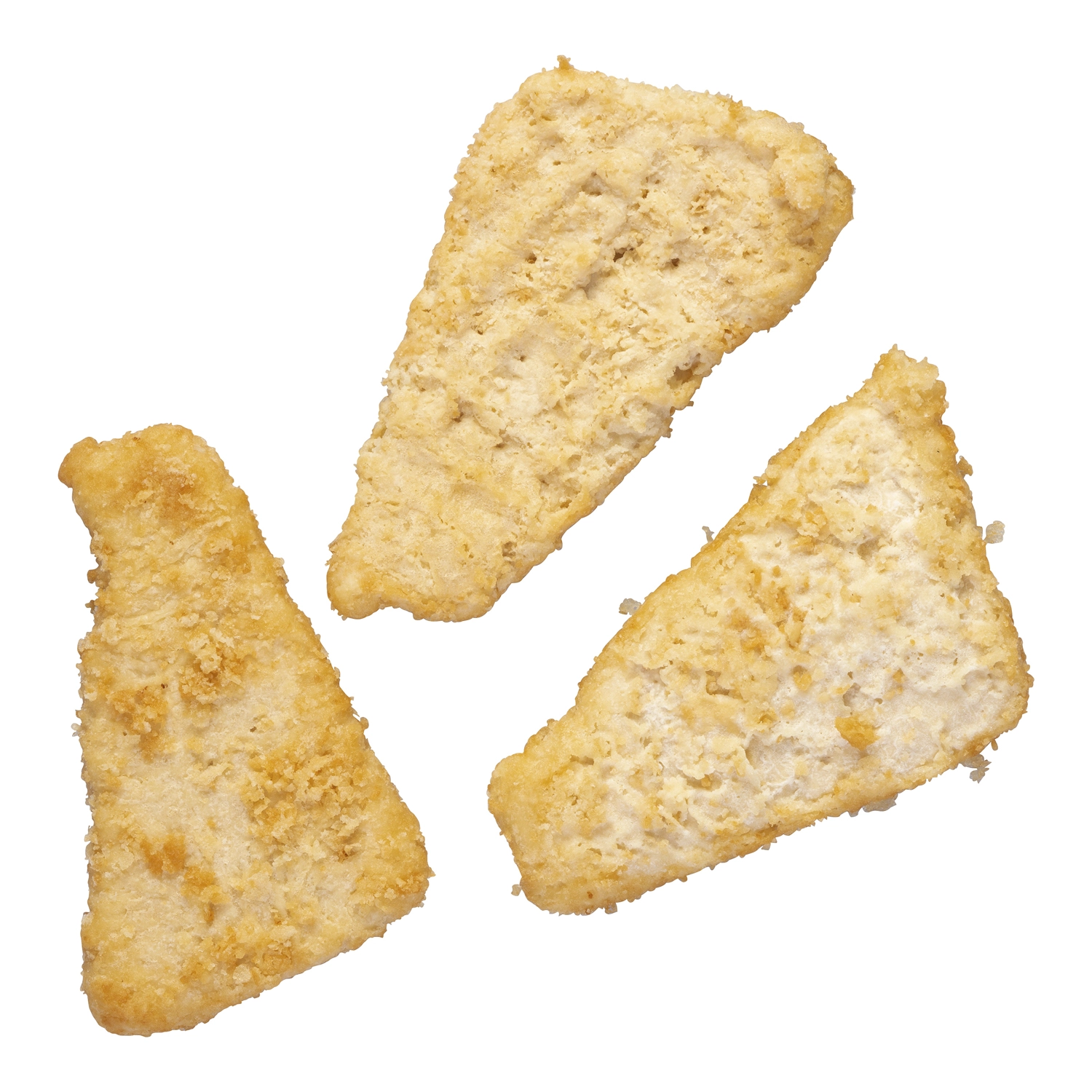 Morue, Bière, Huile de canola, Farine (blé, maïs), Chapelure de blé grillée, Eau, Amidon de blé, Amidon de maïs modifié, Sucres (maltodextrine, dextrine), Sel, Protéines de soya, Huile de palme modifiée, Poudre à pâte, Phosphate de sodium (pour retenir l’humidité), Cellulose modifiée, Gomme de guar, Rocou, Épices. Contient : Morue (poisson), Orge, Blé, Soya.