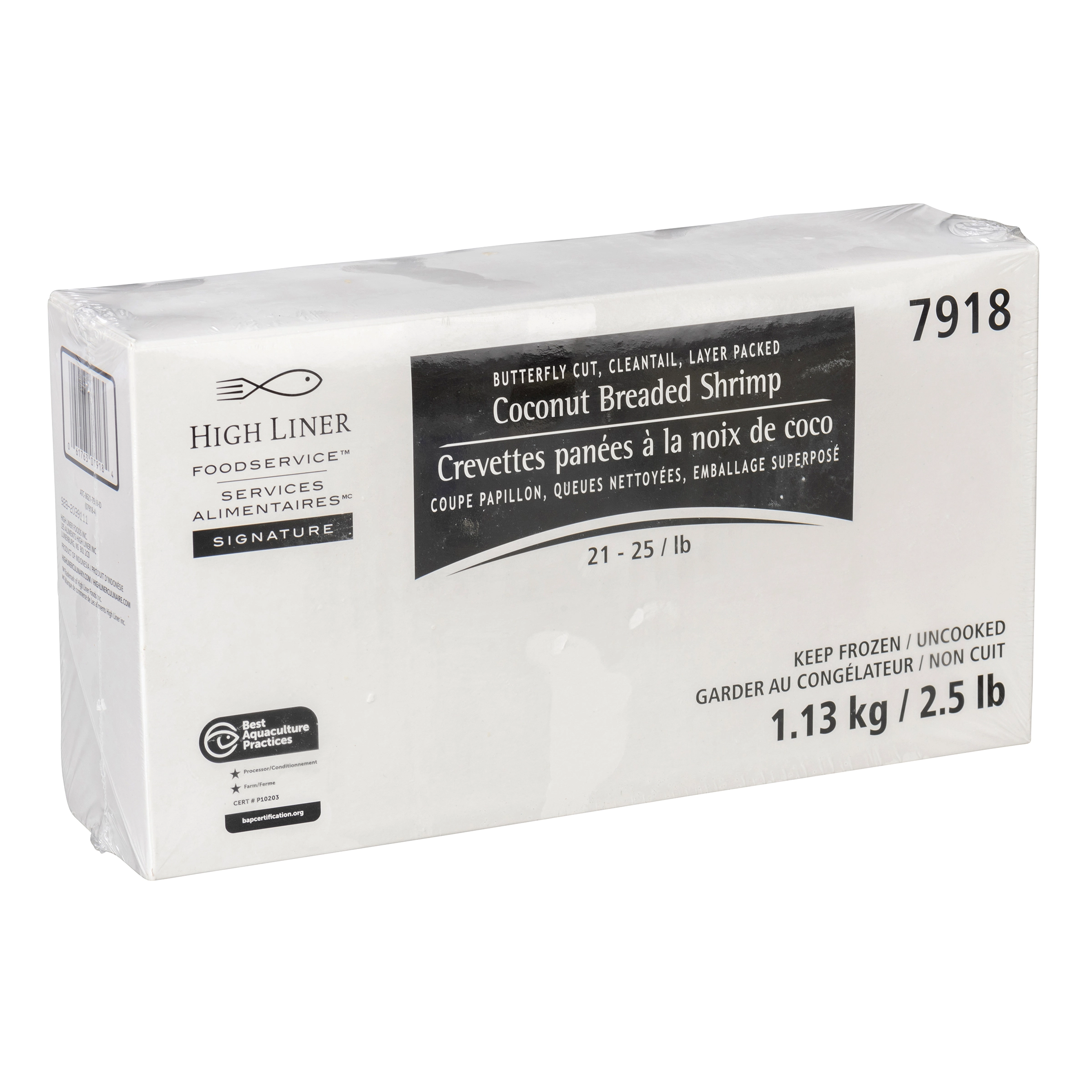 Ces crevettes papillon panées à la noix de coco Signature des Services alimentaires High Liner sont un savoureux exemple d’un grand classique qui plaît à tous. Les crevettes charnues de qualité supérieure sont soigneusement coupées en papillon et enrobées d’une chapelure sucrée et épicée à la noix de coco. Ces bouchées croustillantes assaisonnées et au goût savoureux de la noix de coco sucrée renferment de tendres crevettes auxquelles il est difficile de résister. Surgelées séparément pour faciliter la préparation, les crevettes se cuisent à la perfection en moins de 3 minutes et leur allure alléchante est aussi unique que leur enrobage croustillant au bon goût de noix de coco.