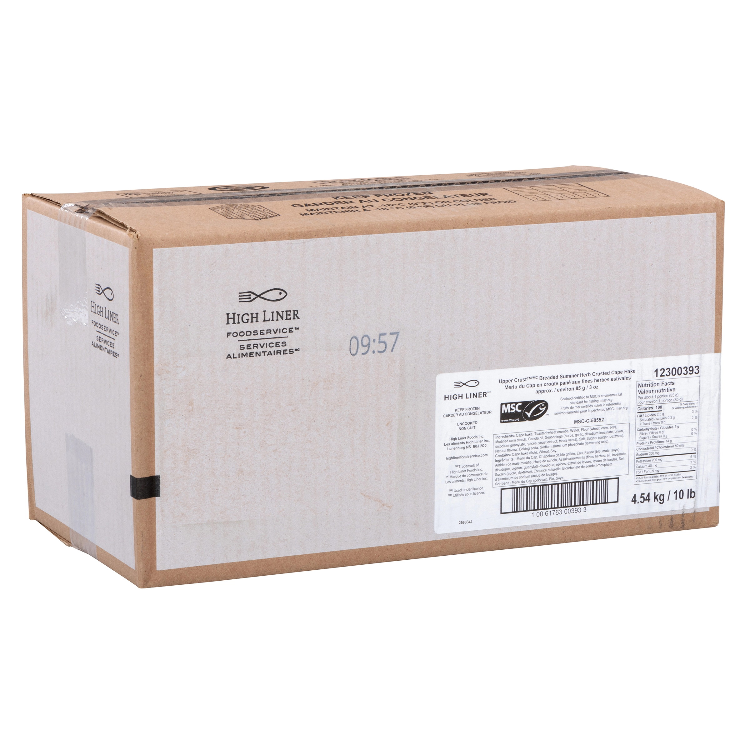 High Liner, 4.54 kg / 10 lb, Upper Crust Merlu du Cap en croûte pané aux fines herbes estivales, environ 85 g / 3 oz