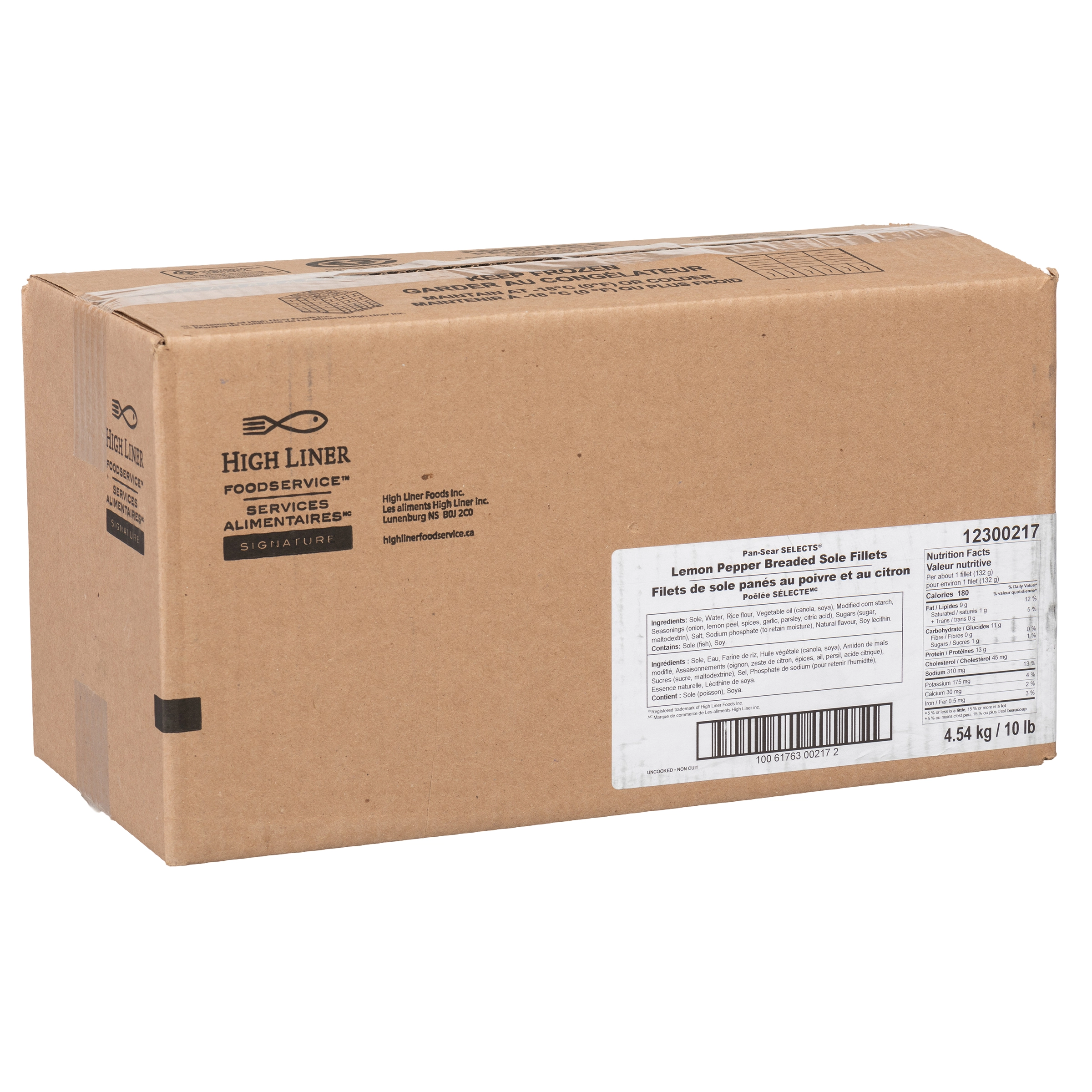 High Liner Services Alimentaires Signature, 4.54 kg / 10 lb, Poêlée SÉLECTE Filets de sole panés au poivre et au citron