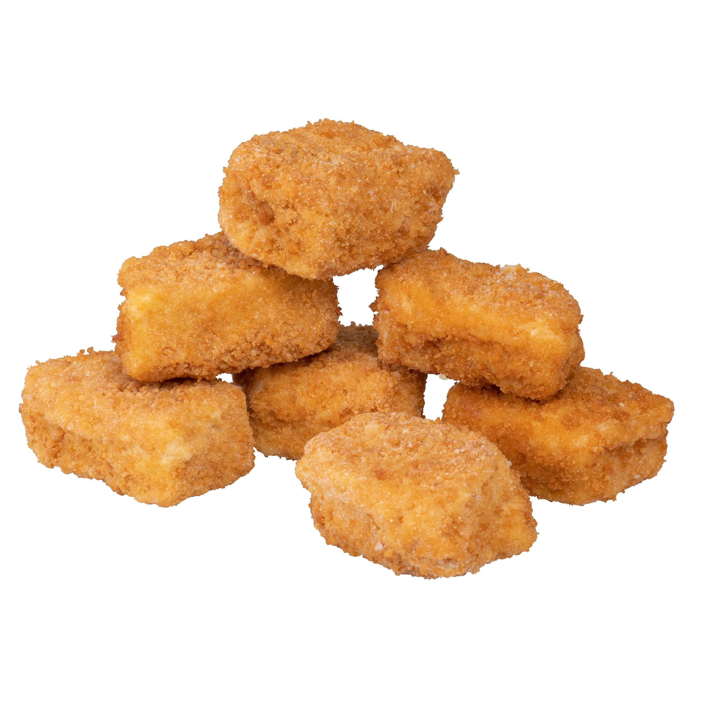Morue, Chapelure de blé grillée, Eau, Huile de canola, Farine (blé, maïs, soya), Amidon de maïs modifié, Sel, Phosphate de sodium (pour retenir l'humidité), Poudre à pâte, Substances laitières, Épices, Gomme de xanthane, Gomme de guar, Sucres (dextrose). Contient : Morue (poisson), Blé, Soya, Lait.
