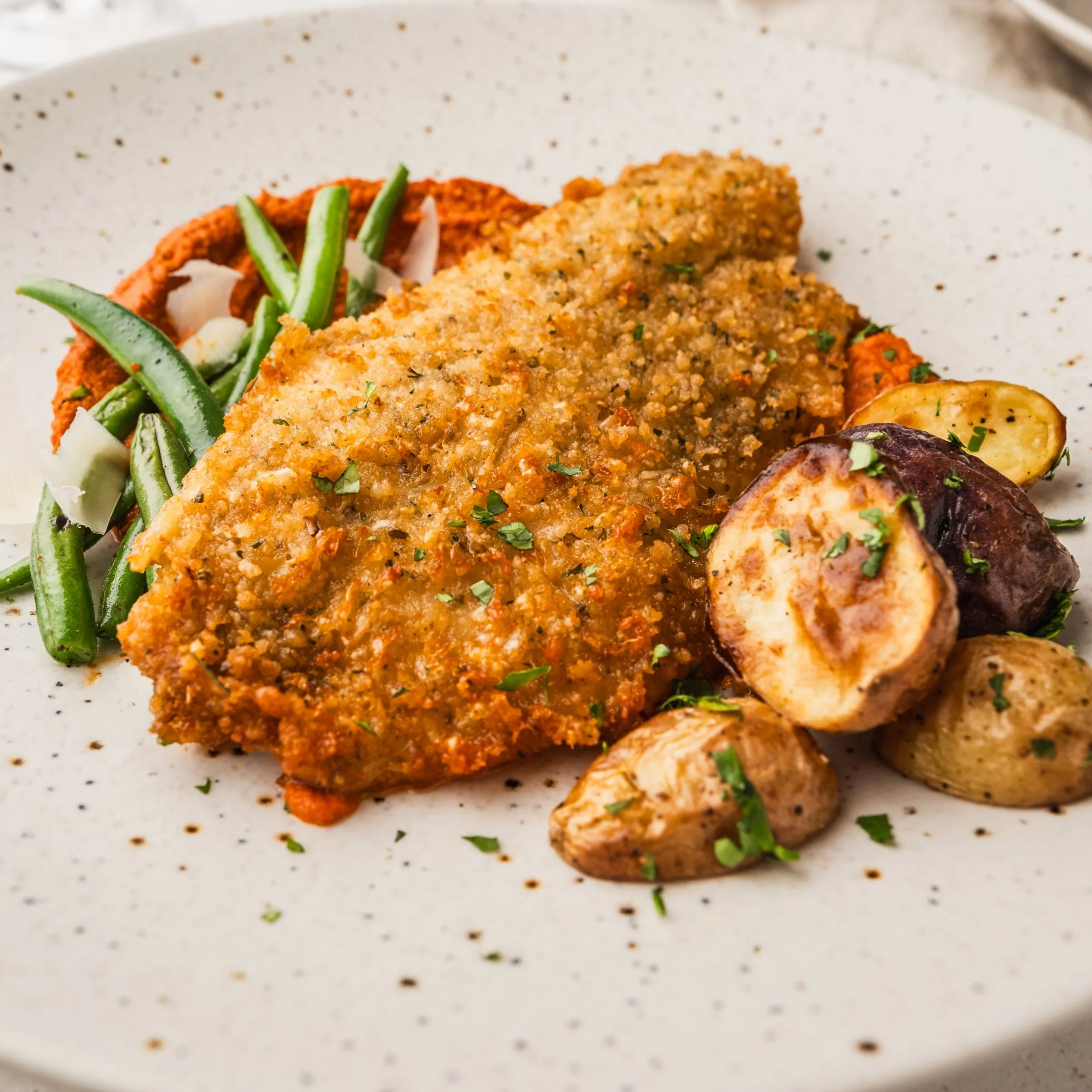 High Liner Services Alimentaires Signature Tilapia en croûte au parmesan sont des filets de coupe naturelle recouverts d’une croûte au fromage parmesan et aux herbes toscanes pour une touche d’Italie dans chaque bouchée. Chaque filet peut être cuit au four dès la sortie du congélateur pour une savoureuse croûte croustillante et une chair floconneuse légèrement sucrée. À la sortie du four, disposez simplement un filet au centre de l’assiette pour créer une présentation qui mettra instantanément l’eau à la bouche. Ces filets en croûte sont le critère de référence pour l’aspect artisanal et l’authenticité des ingrédients dont aucun menu ne peut se passer.