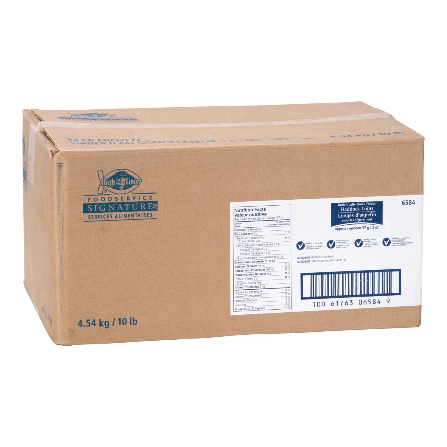 High Liner Services Alimentaires Signature, 4.54 kg / 10 lb, Longes d'aiglefin surgelés séparément, environ 57 g / 2 oz