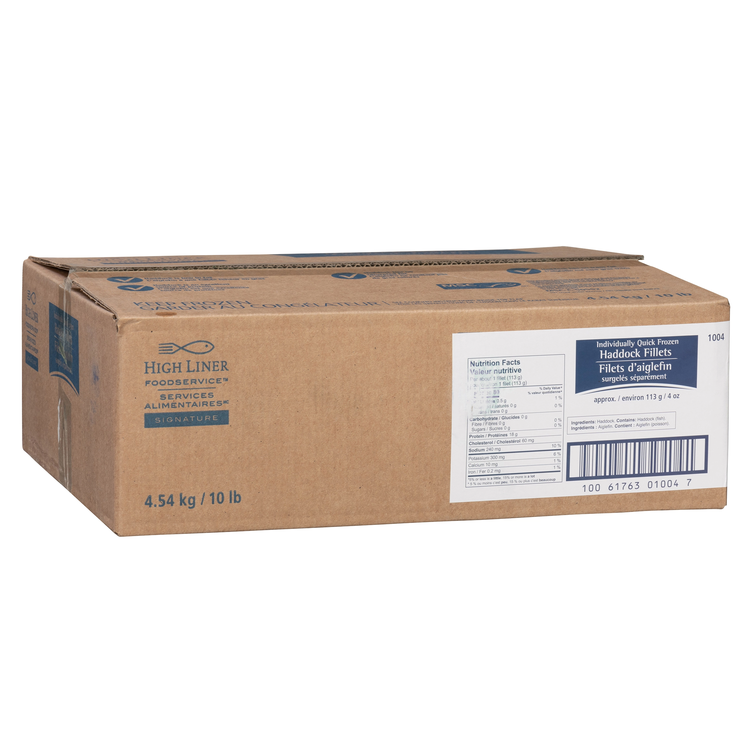 High Liner Services Alimentaires Signature, 4.54 kg / 10 lb, Filets d'aiglefin surgelés séparément, environ 113 g / 4 oz