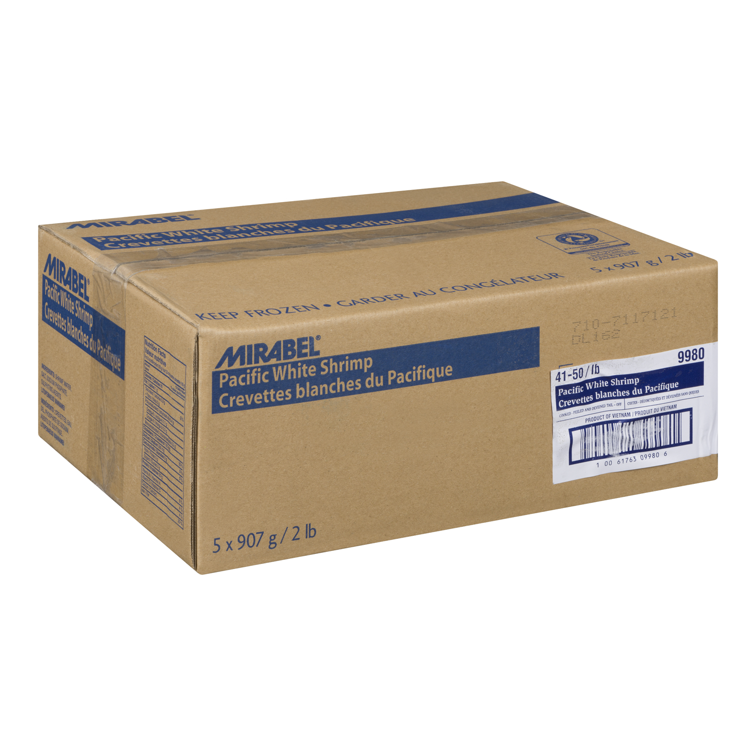 Mirabel, 5 x 907 g / 2 lb, Crevettes blanches du Pacifique, Cuites, Décortiquées Et Déveinées, Sans Queues, 41-50/lb