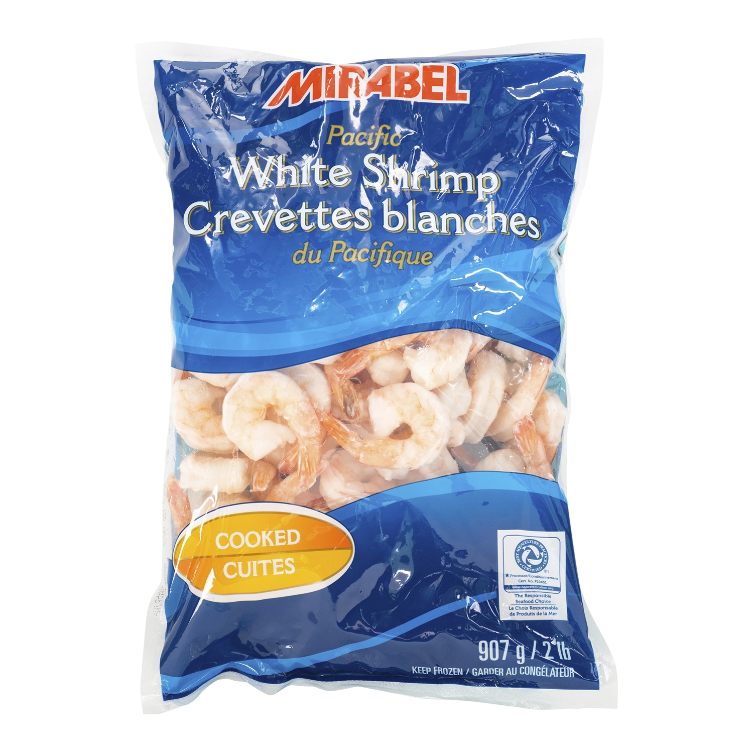 Les crevettes blanches du Pacifique Mirabel sont un excellent ajout à votre éventail de produits de la mer. Surgelées séparément, ces crevettes blanches cuites et avec queue sont offertes en différents formats et sont parfaites en entrée, en salade ou comme plat principal. Vous n’avez qu’à les décongeler et servir ou encore les réchauffer rapidement avant de les ajouter à vos recettes. Rehaussez votre menu tout en gagnant du temps. Produit certifié BAP.
