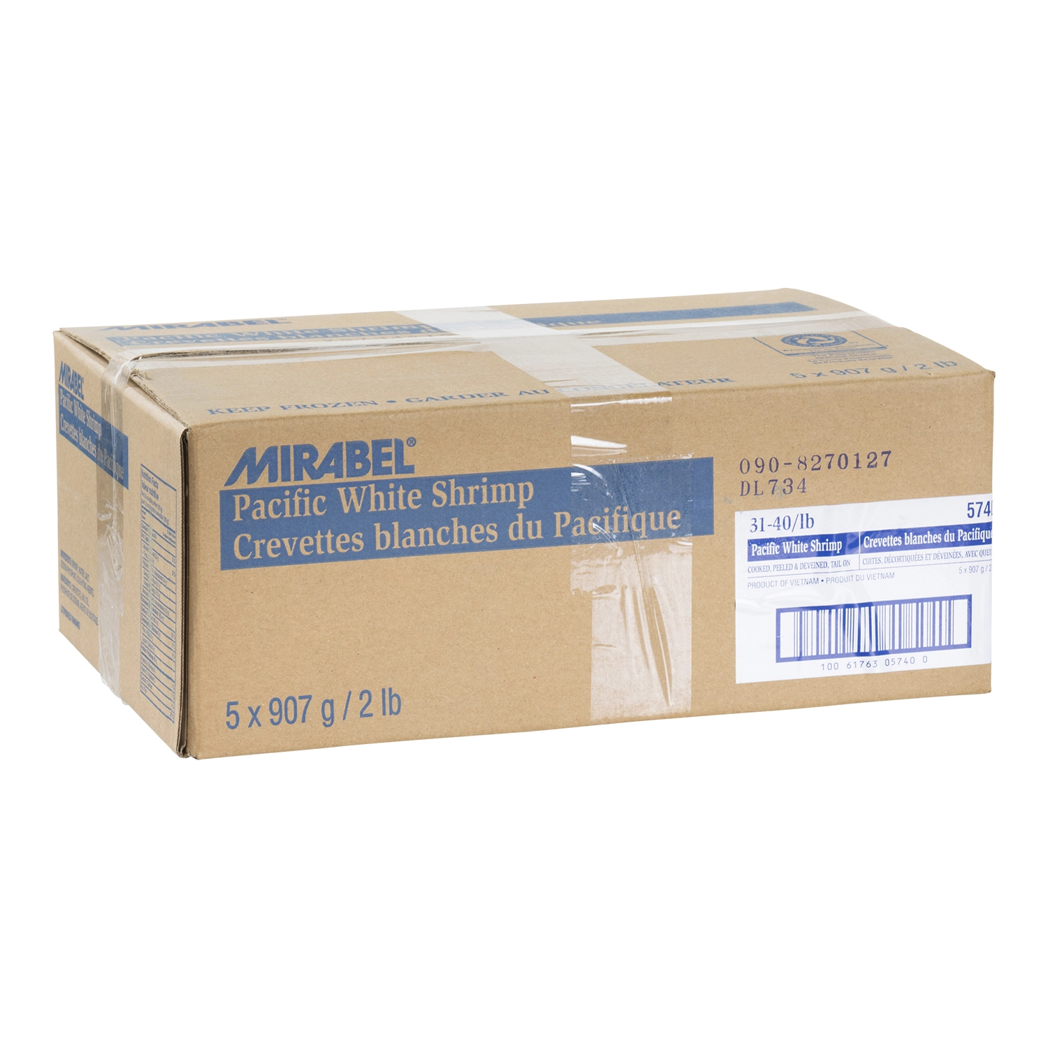 Mirabel, 5 x 907 g / 2 lb, Crevettes blanches du Pacifique, Cuites, Décortiquées Et Déveinées, Avec Queues, 31-40/lb