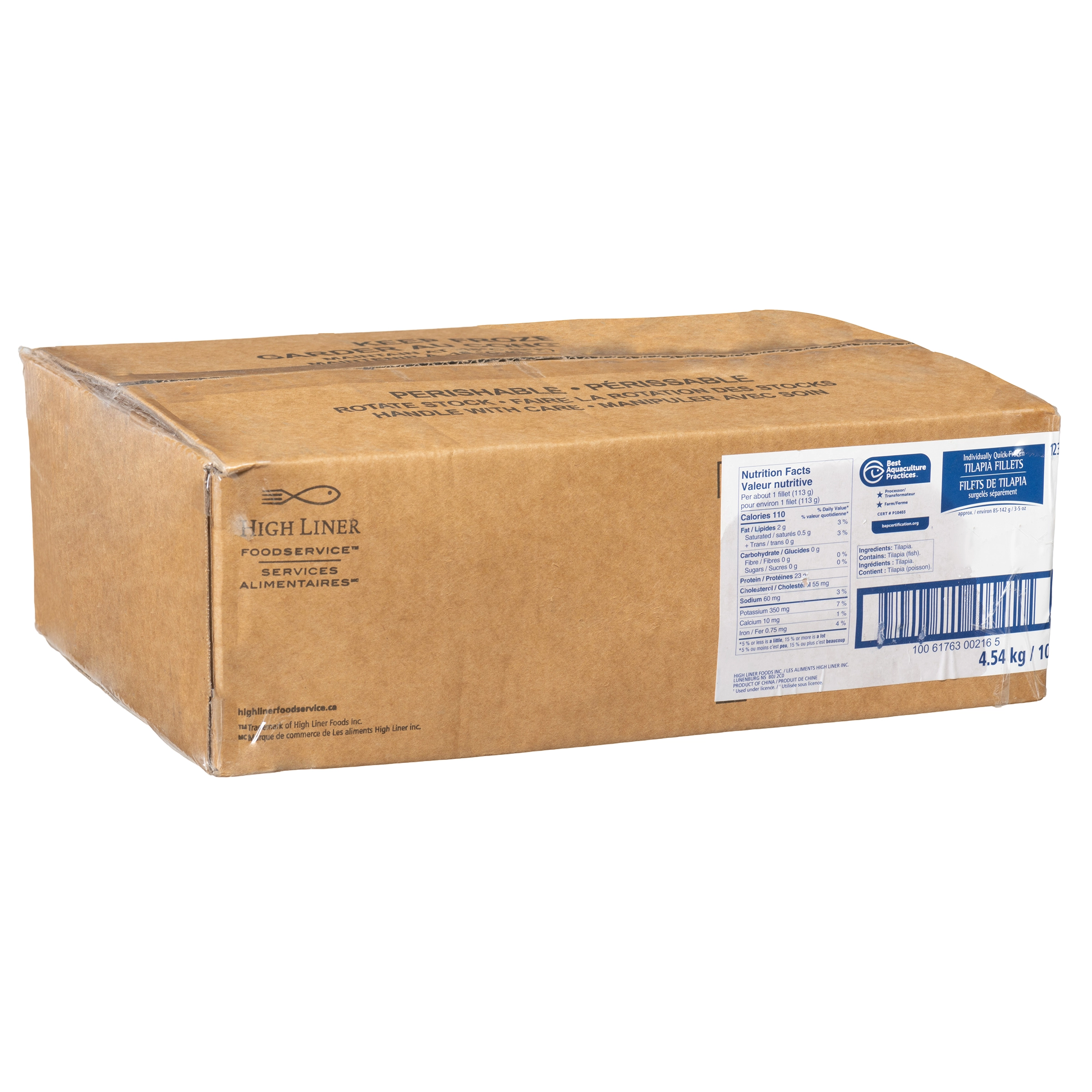 High Liner Services Alimentaires, 4.54 kg / 10 lb, Filets de Tilapia surgelés séparément, environ 85-142 g / 3-5 oz
