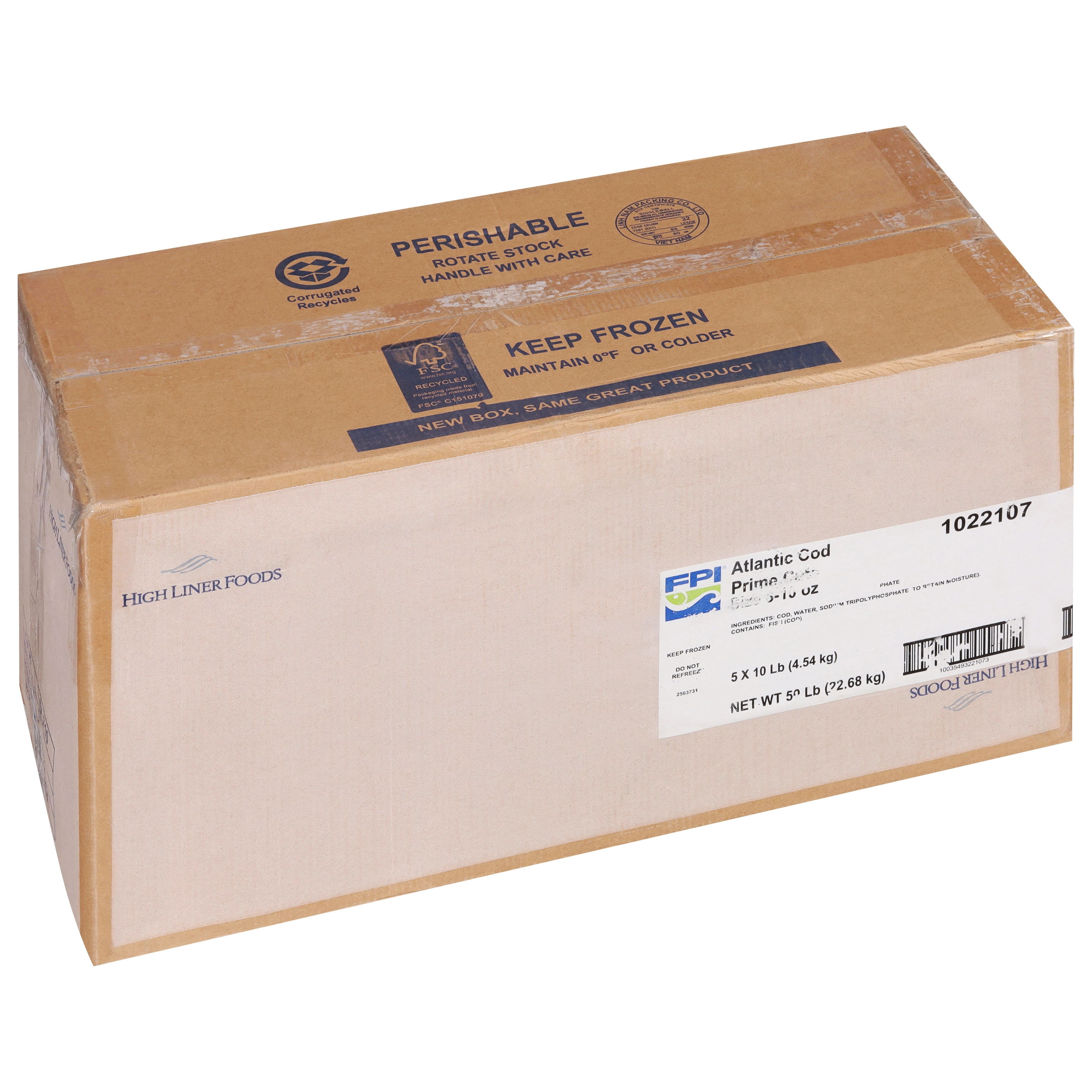 Fishery Product North Atlantic Cod Loin Prime Cuts are wild caught in the icy blue North Atlantic. This represents very best of the most desirable part of the fish, with a deliciously mild flavor and flaky texture that adds depth to any number of your recipes. Each cooks easily to perfection using almost any cooking method, with excellent plate consistency and no unnecessary waste.