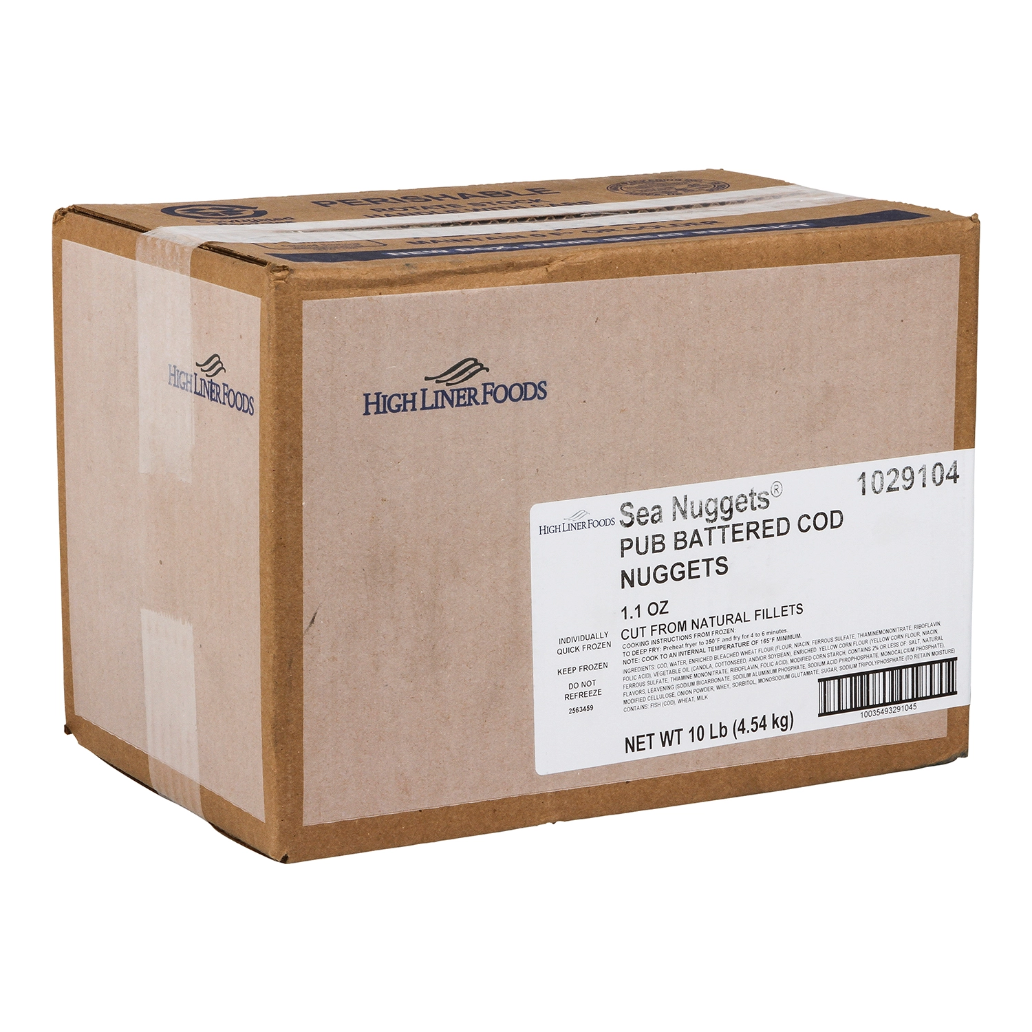 High Liner Sea Nuggets Pub Battered Cod Nuggets take finger food to a whole new level. Wild caught Cod is dipped in signature seasoned batter for a delectable crispy crunch, preserving the moist flakiness of the Cod in every way. These delicious nuggets easily bake or fry from frozen to golden crispy perfection in minutes. Simply cook, serve, and watch the fun begin.