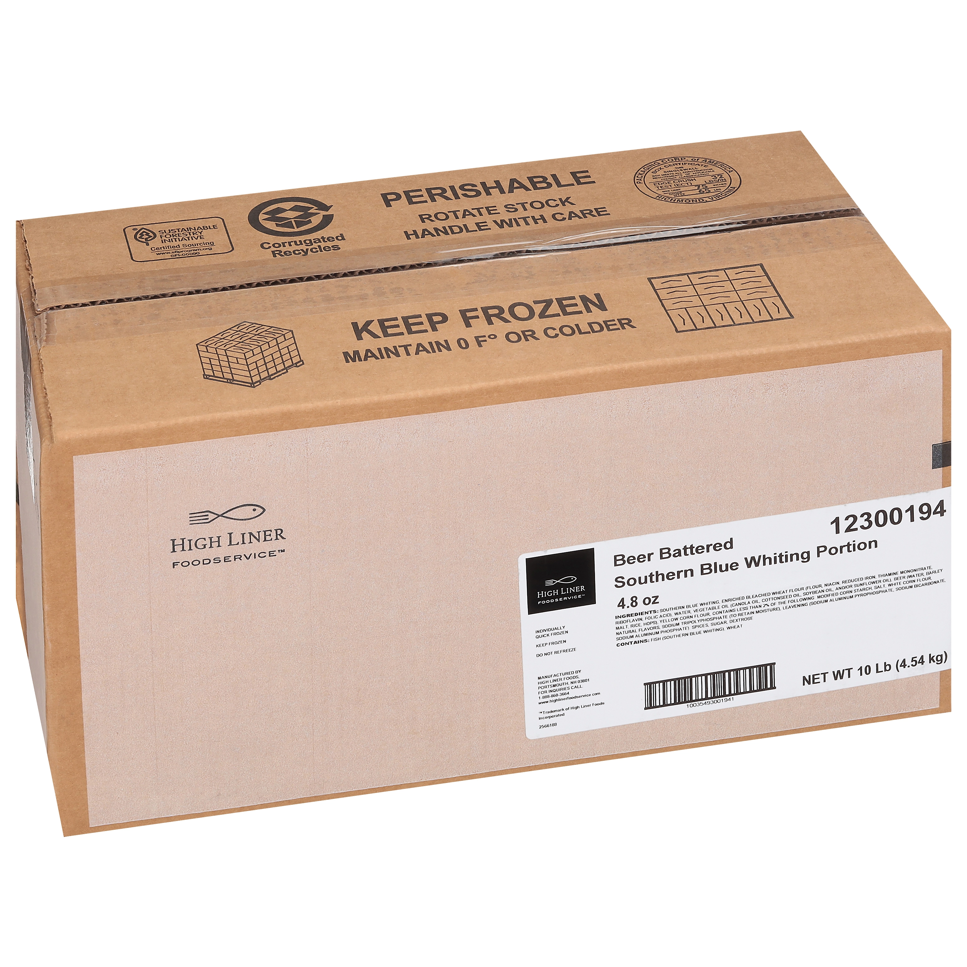 High Liner Foods Beer Battered Southern Blue Whiting fillets are generously dipped in batter containing real beer. These specially battered fillets deep fry in no time to golden crunchy, flaky fish perfection, with the consistency and irresistible plate coverage you demand. Not only is this menu favorite the epitome of what beer-battered seafood should be.