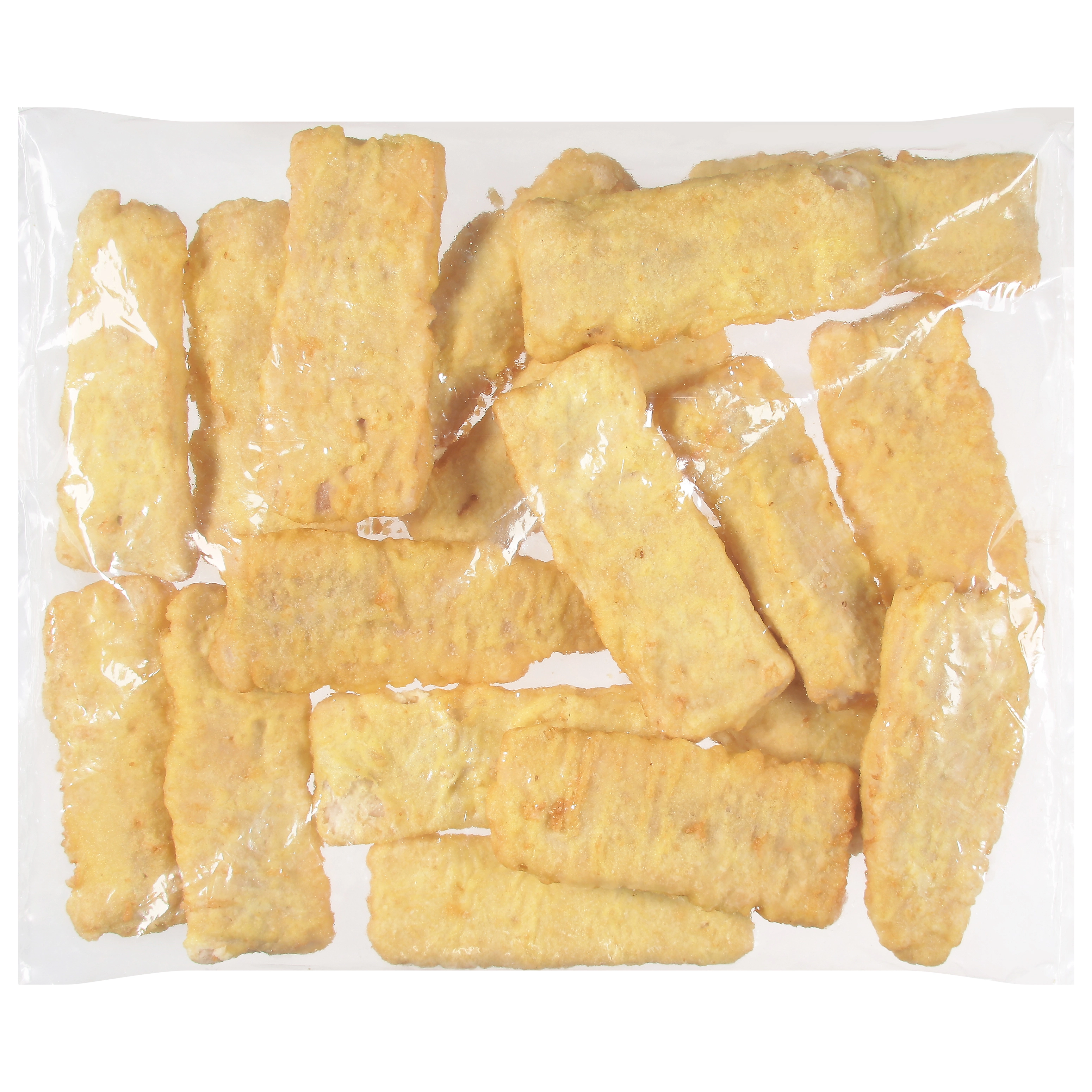 SOUTHERN BLUE WHITING, ENRICHED BLEACHED WHEAT FLOUR (FLOUR, NIACIN, REDUCED IRON, THIAMINE MONONITRATE, RIBOFLAVIN, FOLIC ACID), WATER, VEGETABLE OIL (CANOLA OIL, COTTONSEED OIL, SOYBEAN OIL, AND/OR SUNFLOWER OIL), BEER (WATER, BARLEY MALT, RICE, HOPS), YELLOW CORN FLOUR, CONTAINS LESS THAN 2% OF THE FOLLOWING: MODIFIED CORN STARCH, SALT, WHITE CORN FLOUR, NATURAL FLAVORS, SODIUM TRIPOLYPHOSPHATE (TO RETAIN MOISTURE), LEAVENING (SODIUM ALUMINUM PYROPHOSPHATE, SODIUM BICARBONATE, SODIUM ALUMINUM PHOSPHATE), SPICES, SUGAR, DEXTROSE.