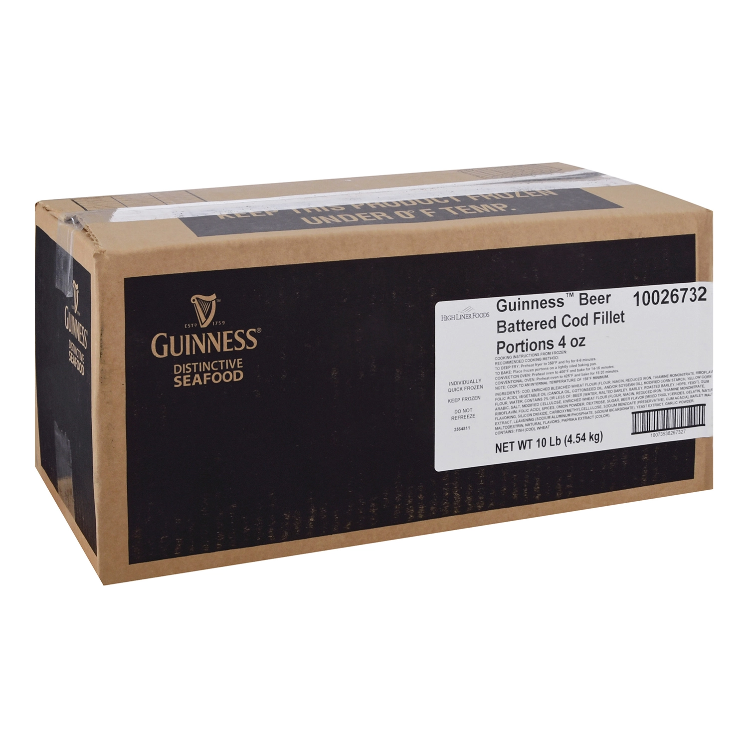 10 Lb (4.54 kg) Guinness Beer Battered Cod Fillet Portions 4 oz