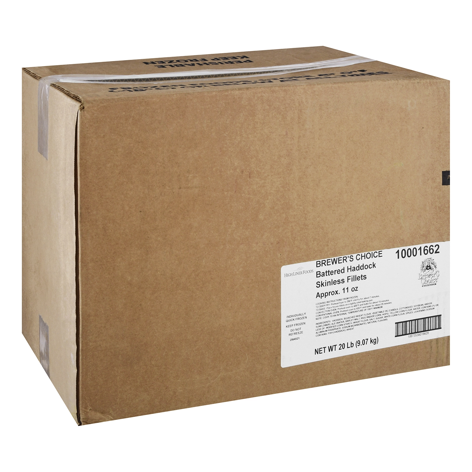 20 Lb (9.07 kg) Brewer's Choice Battered Haddock Skinless Fillets, Approx. 11 oz, MSC
