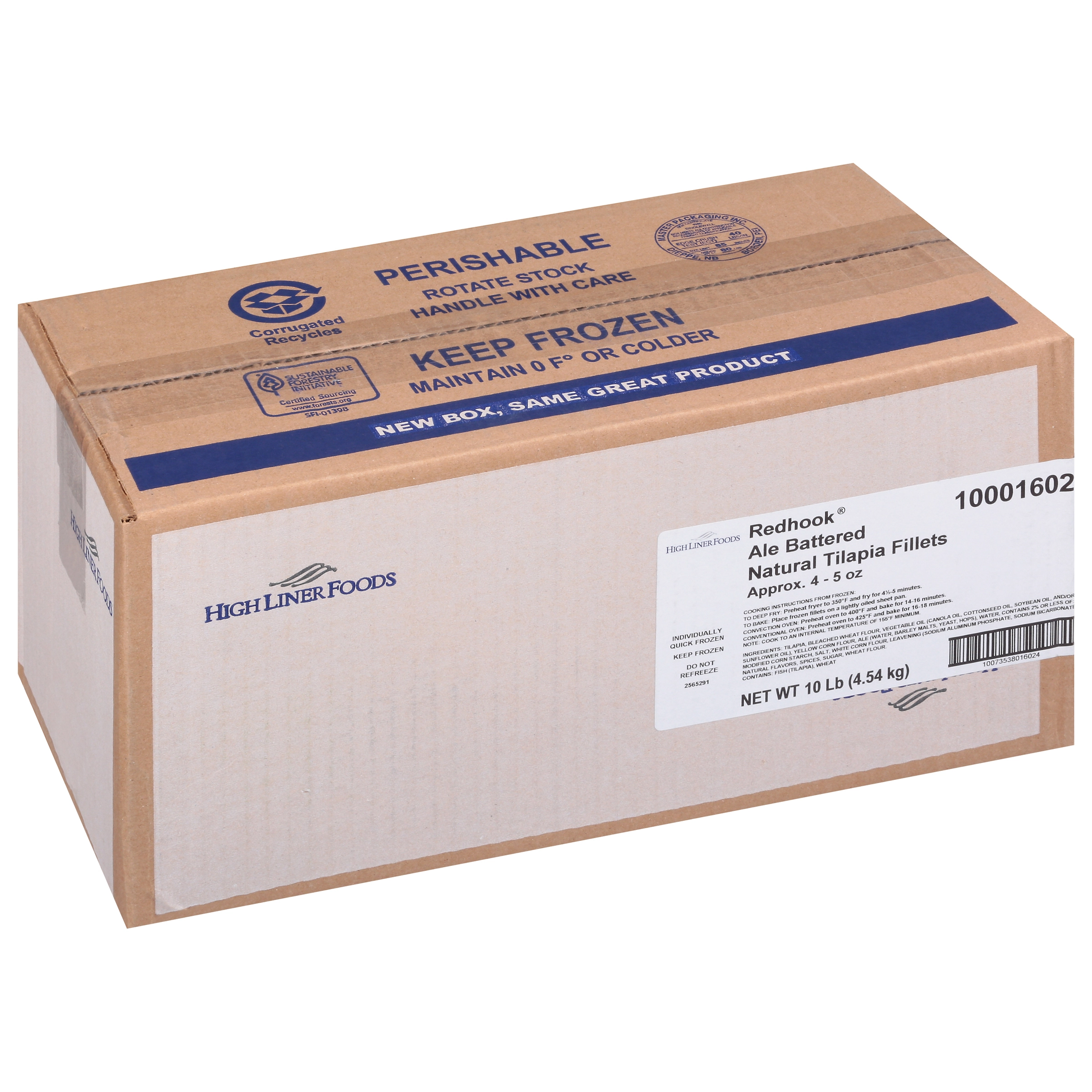 10 Lb (4.54 kg) Redhook Ale Battered Natural Tilapia Fillets Approx. 4 - 5 oz