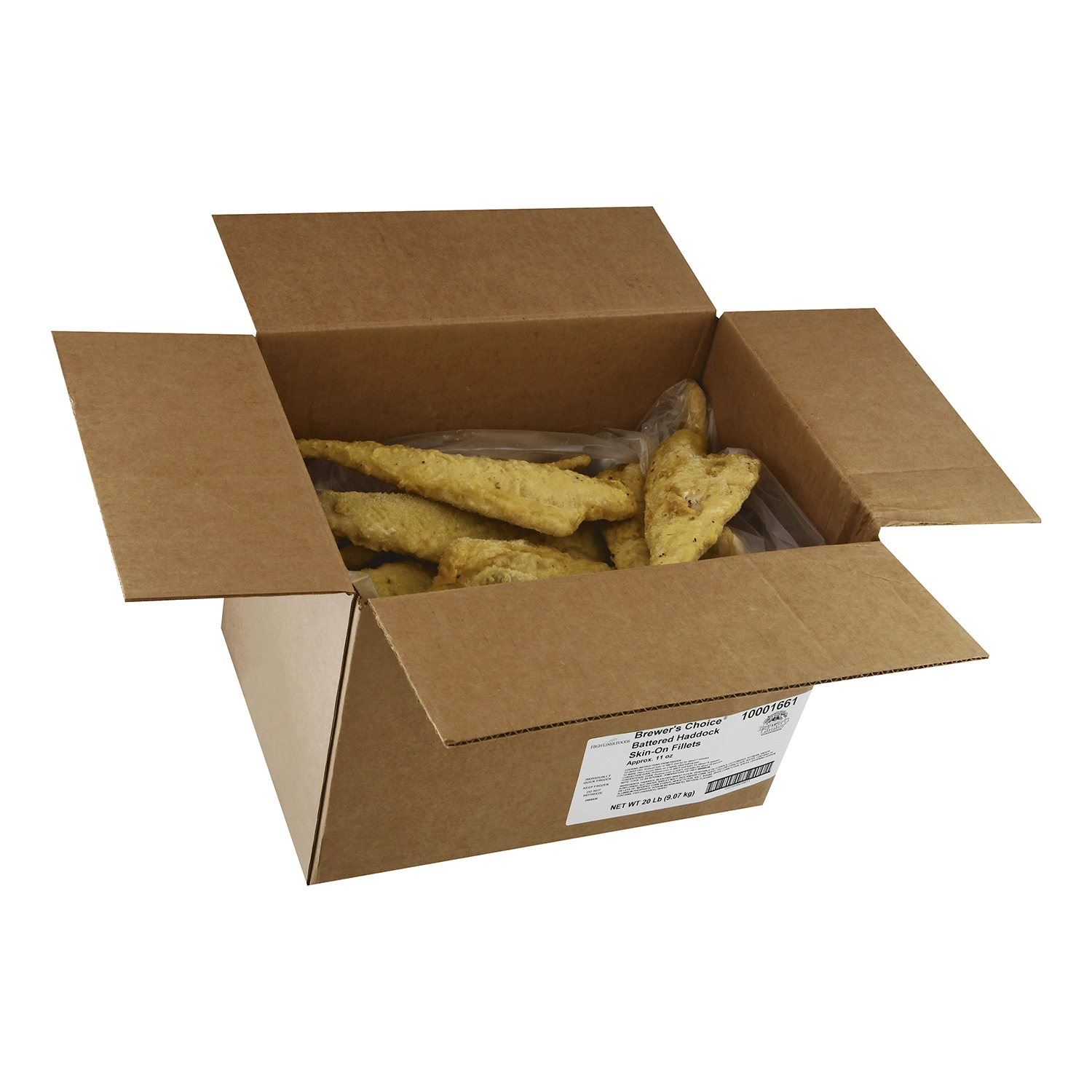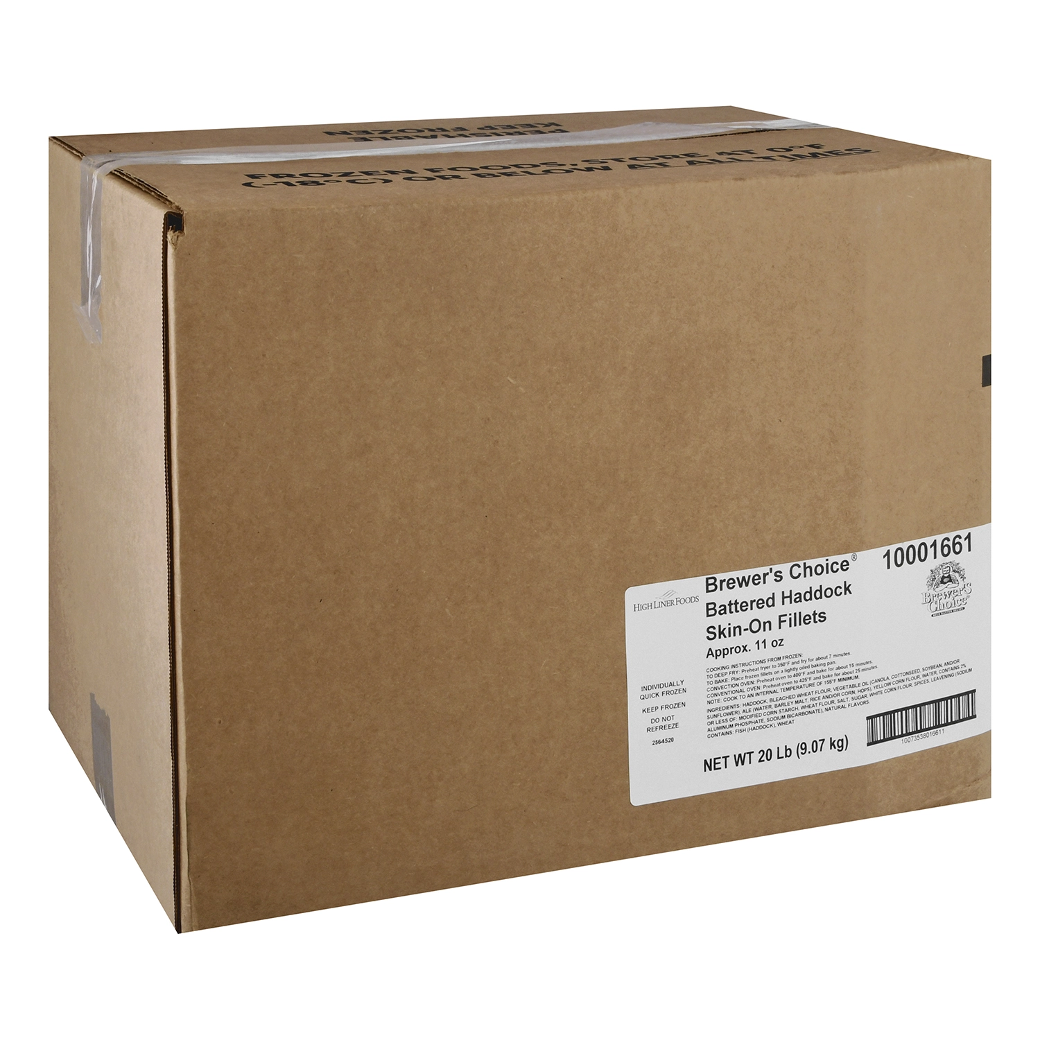 20 Lb (9.07 kg) Brewer's Choice Battered Haddock Skin-On Fillets, Approx. 11 oz, MSC