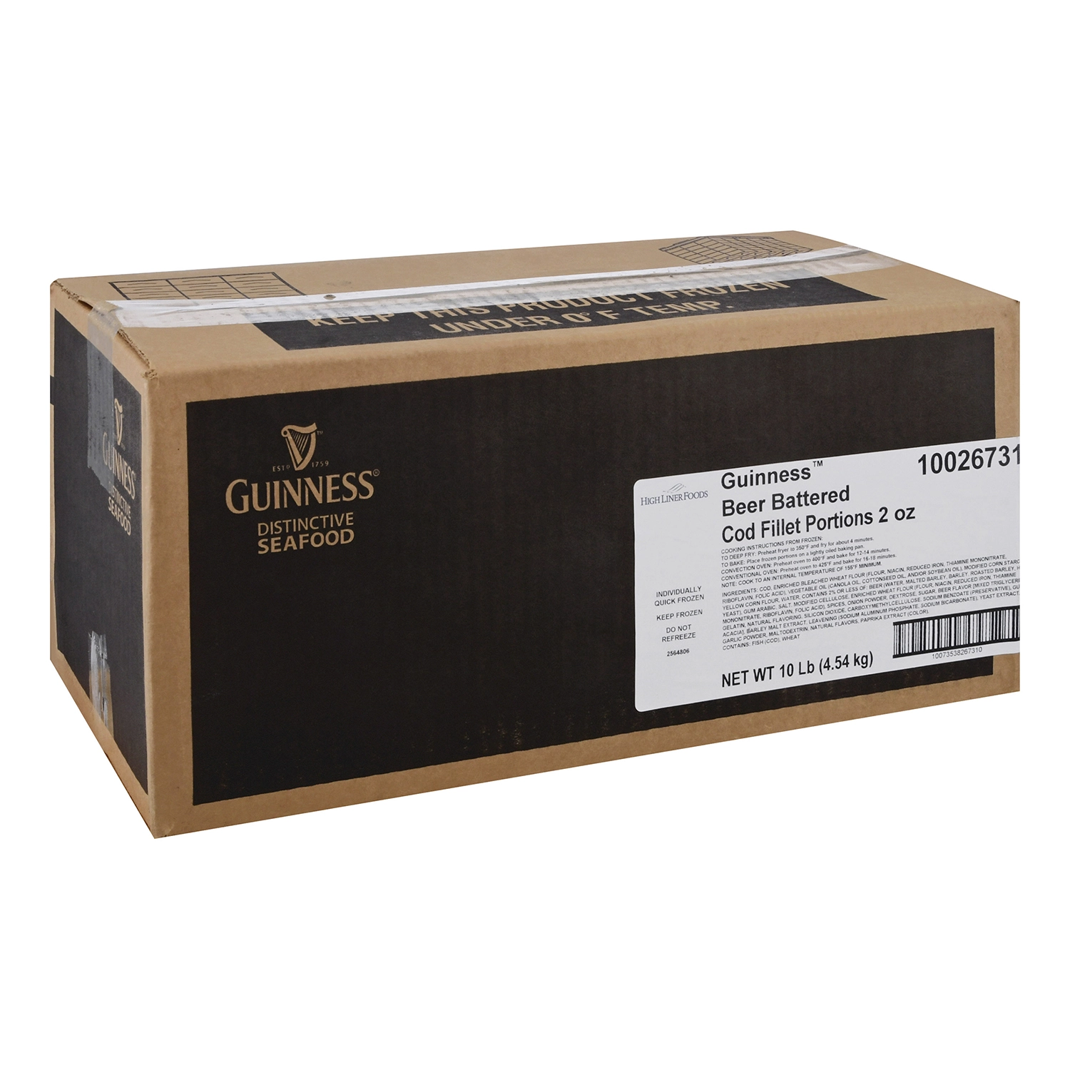 10 Lb (4.54 kg) Guinness Beer Battered Cod Fillet Portions, 2 oz