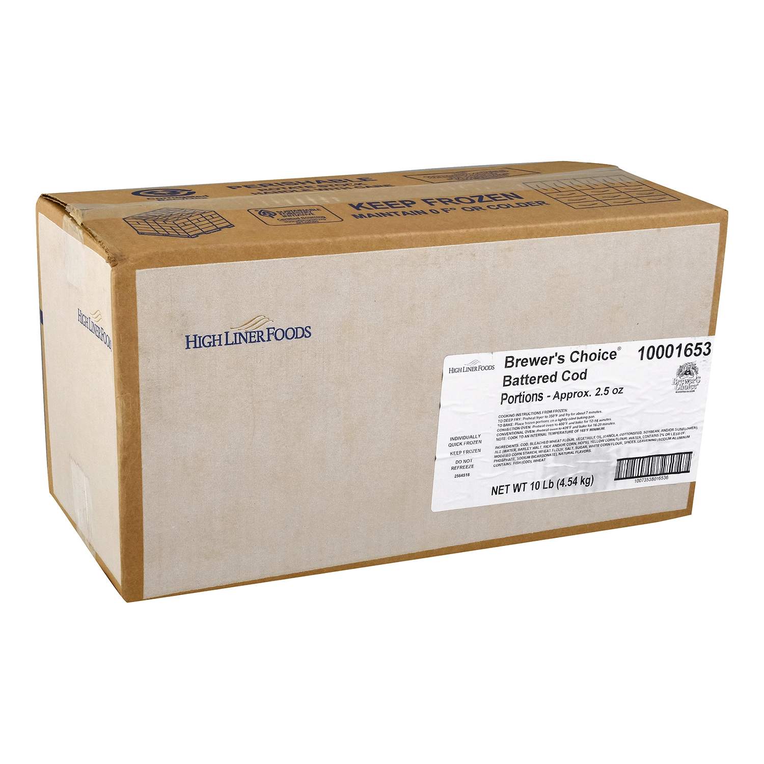 10 Lb (4.54 kg) Brewer's Choice Battered Cod Portions - Approx. 2.5 oz