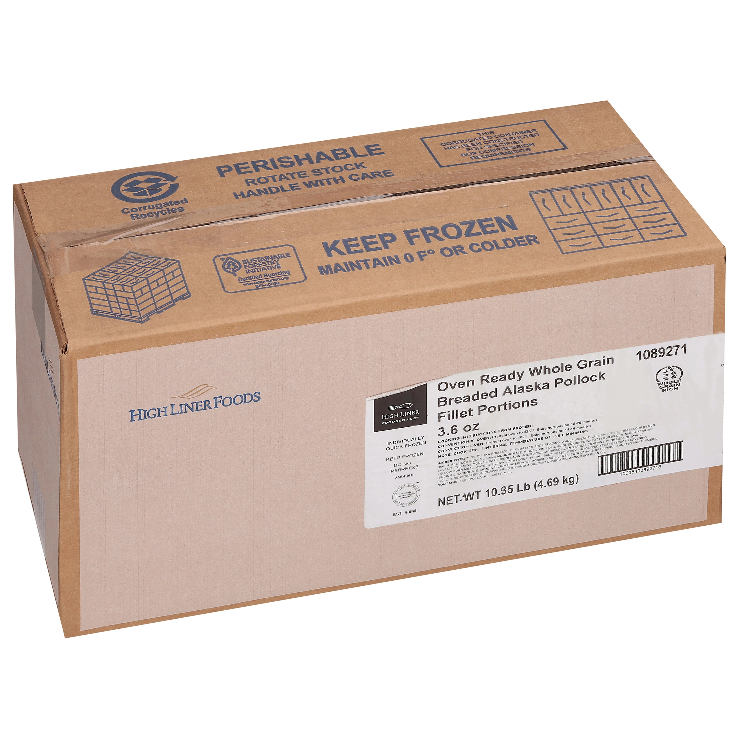 10.35 Lb (4.69 kg) Oven Ready Whole Grain Breaded Alaska Pollock Fillet Portions 3.6 oz, CN, MSC