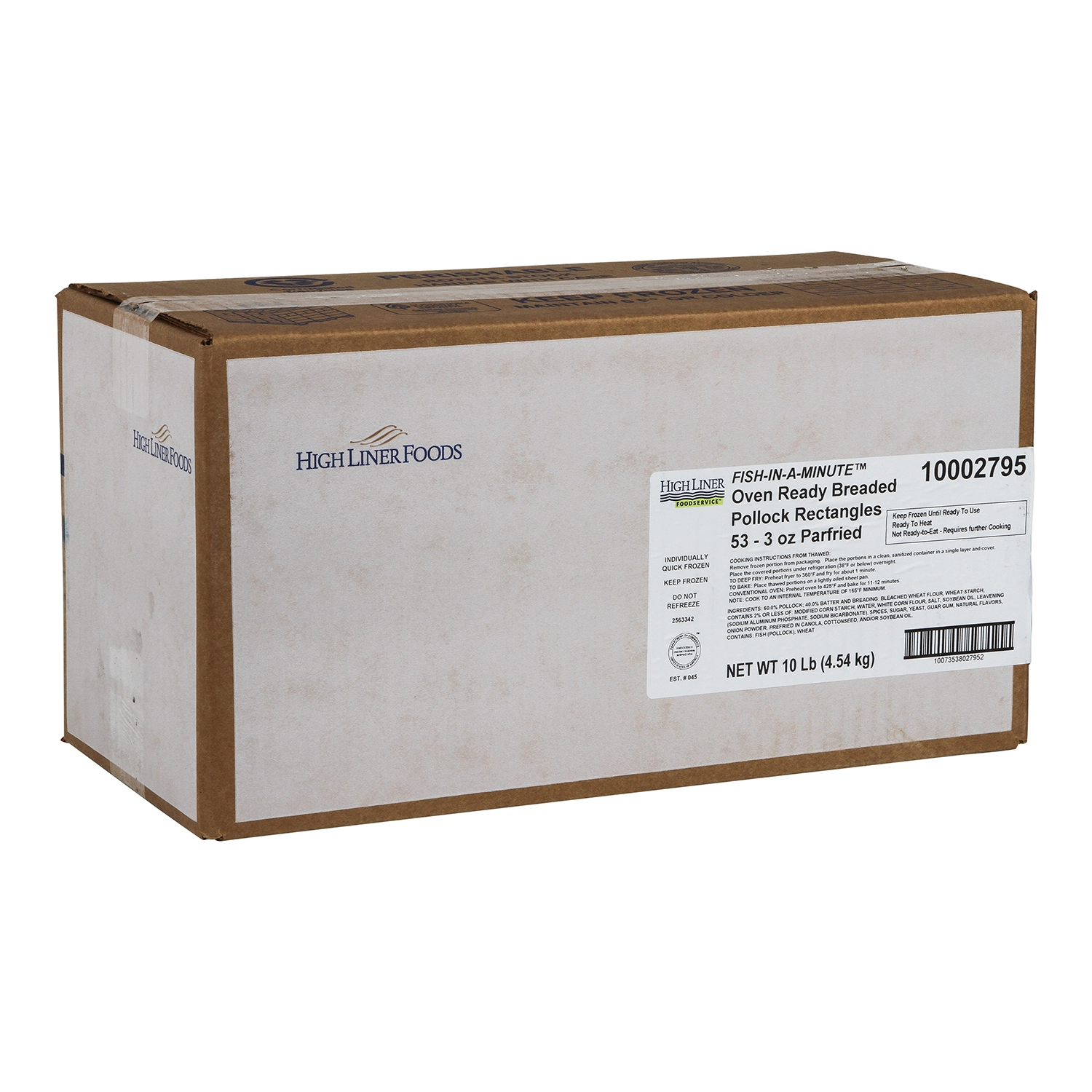 10 Lb (4.54 kg) FISH-IN-A-MINUTE Crispy Style Breaded Pollock Rectangles Parfried, 3 oz, CN