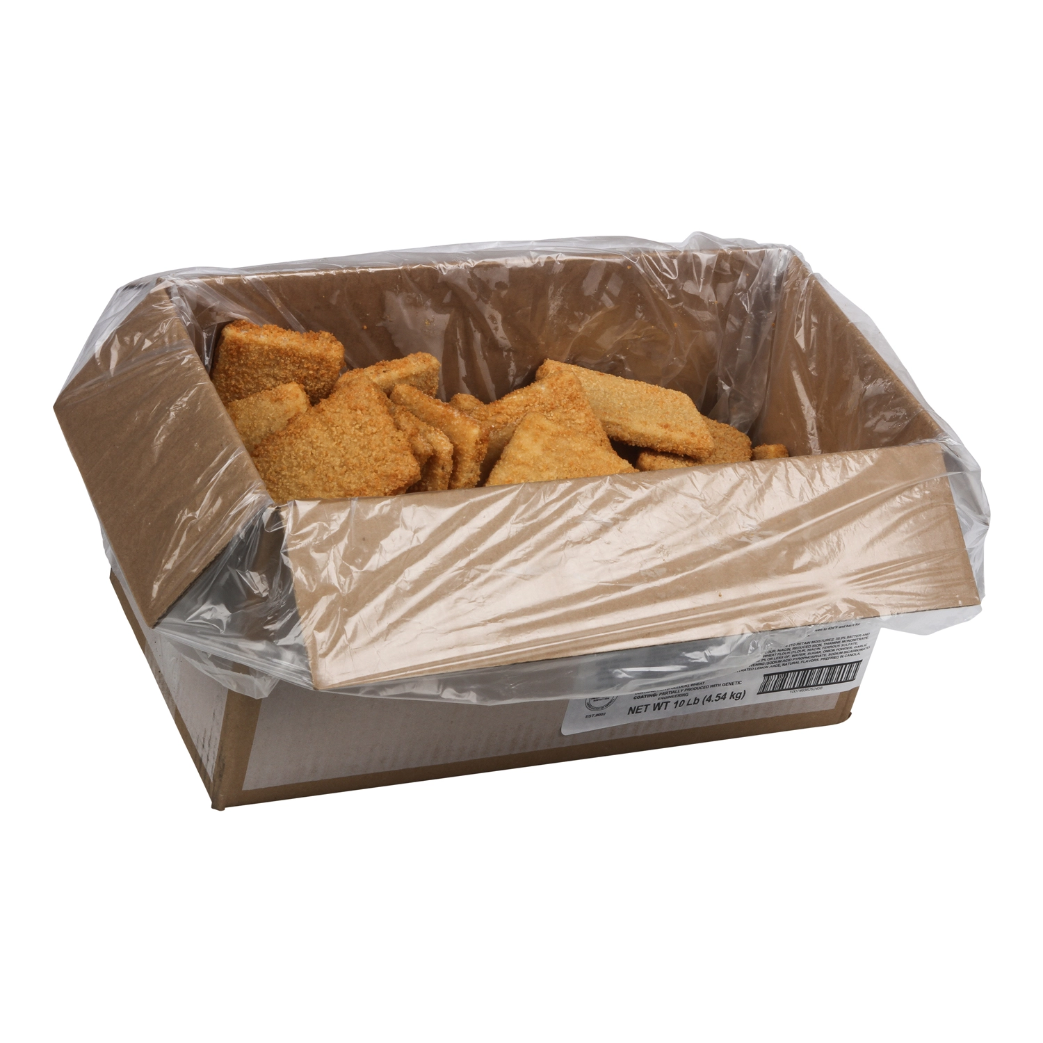 64.2% POLLOCK [FISH, WATER, SODIUM TRIPOLYPHOSPHATE (TO RETAIN MOISTURE)]; 35.8% BATTER AND BREADING: WHOLE WHEAT FLOUR, ENRICHED WHEAT FLOUR (FLOUR, NIACIN, REDUCED IRON, THIAMINE MONONITRATE, RIBOFLAVIN, FOLIC ACID), ENRICHED WHEAT FLOUR (FLOUR, NIACIN, FERROUS SULFATE, THIAMINE MONONITRATE, RIBOFLAVIN, FOLIC ACID), MODIFIED CORN STARCH, WHOLE YELLOW CORN MEAL, CONTAINS 2% OR LESS OF: WATER, YELLOW CORN FLOUR, SUGAR, SALT, YEAST, WHEY, AUTOLYZED YEAST EXTRACT, LEAVENING (SODIUM BICARBONATE, MONOCALCIUM PHOSPHATE), MODIFIED CELLULOSE, DEHYDRATED ONION, EXTRACTIVES OF PAPRIKA, ANNATTO AND TURMERIC (COLOR). PAR-FRIED IN CANOLA OIL, COTTONSEED OIL, AND/OR SOYBEAN OIL.