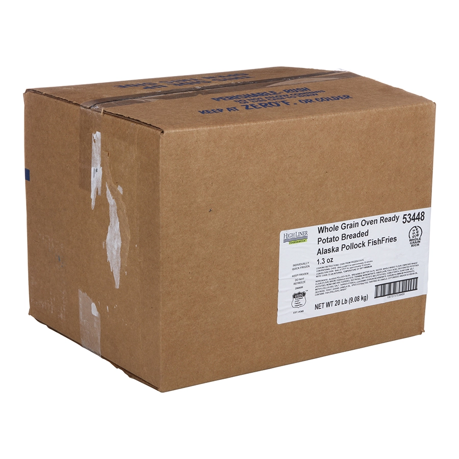20 Lb (9.07 kg) Whole Grain Oven Ready Potato Breaded Alaska Pollock FishFries 1.3 oz, CN, MSC