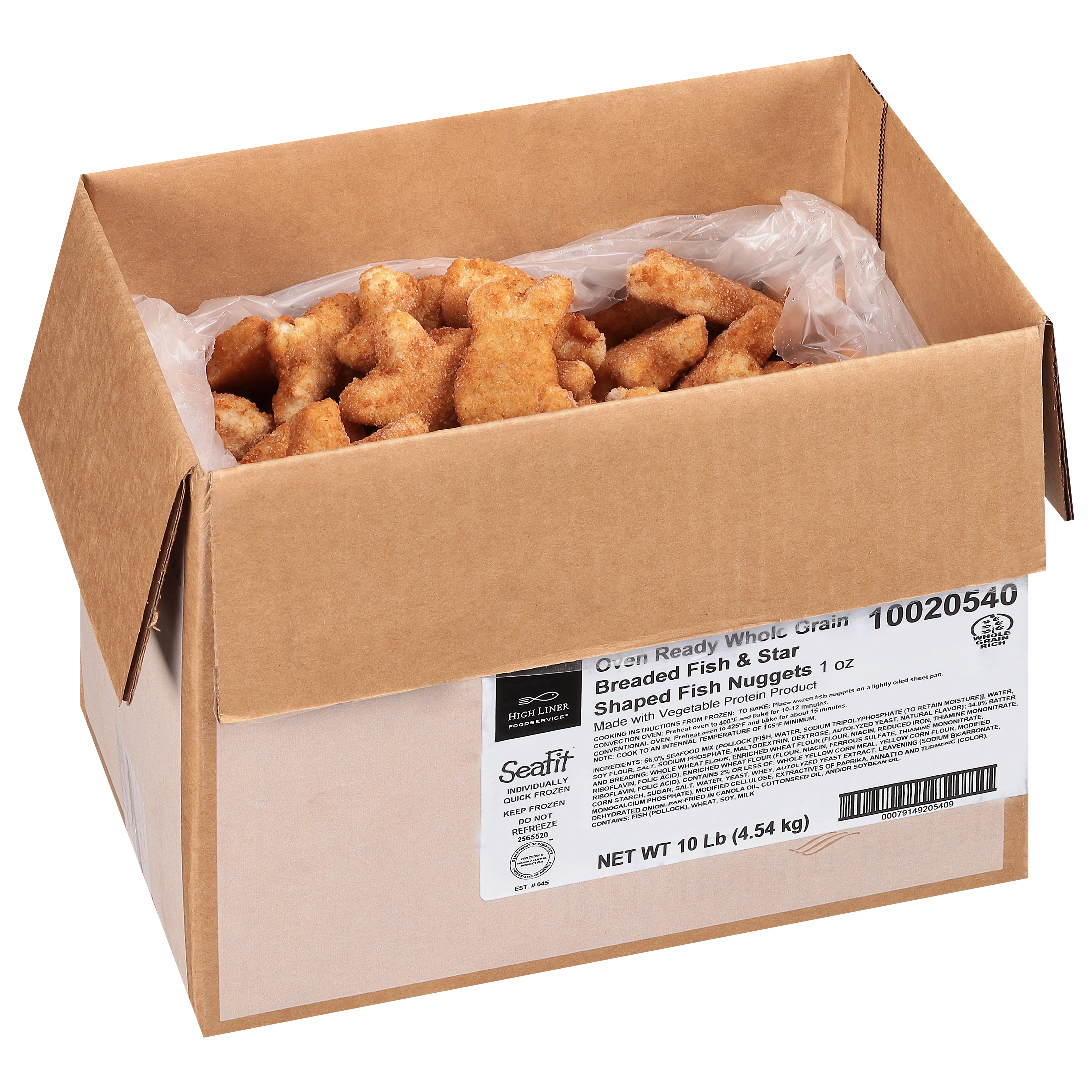 10 Lb (4.54 kg) Oven Ready Whole Grain Breaded Fish & Star Shaped Fish Nuggets, 1 oz, CN