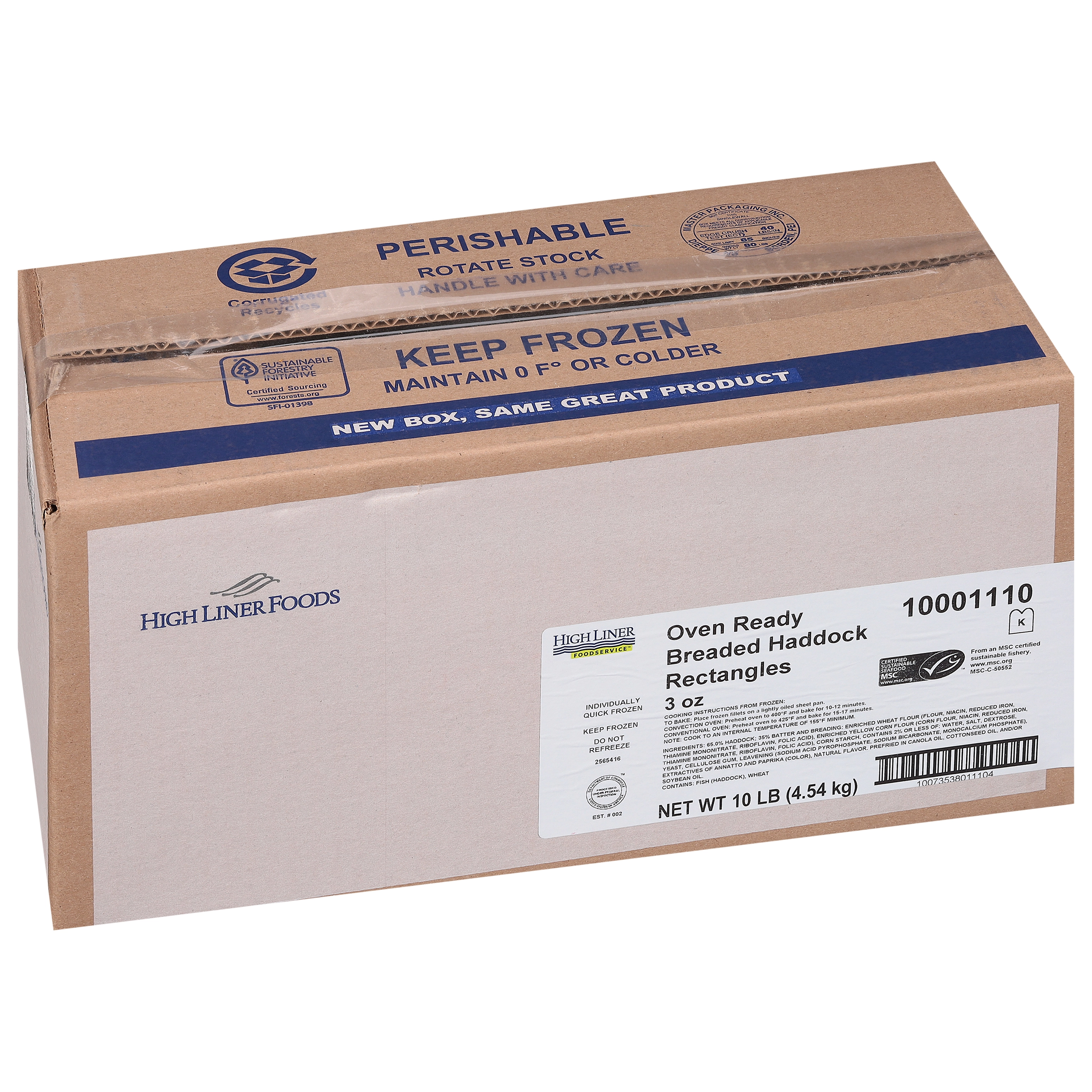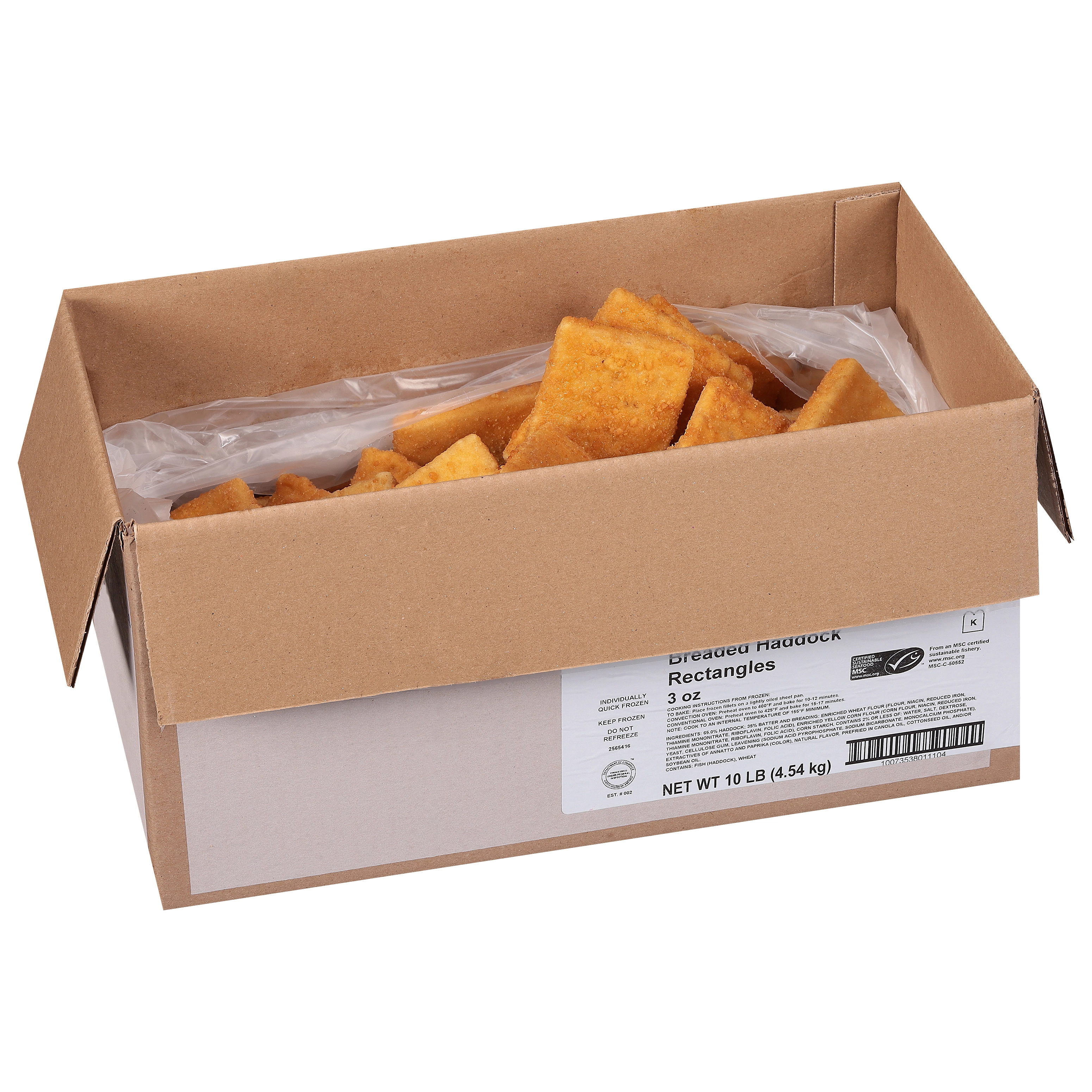 10 Lb (4.54 kg) Oven Ready Breaded Haddock Rectangles 3 oz, Kosher, CN, MSC