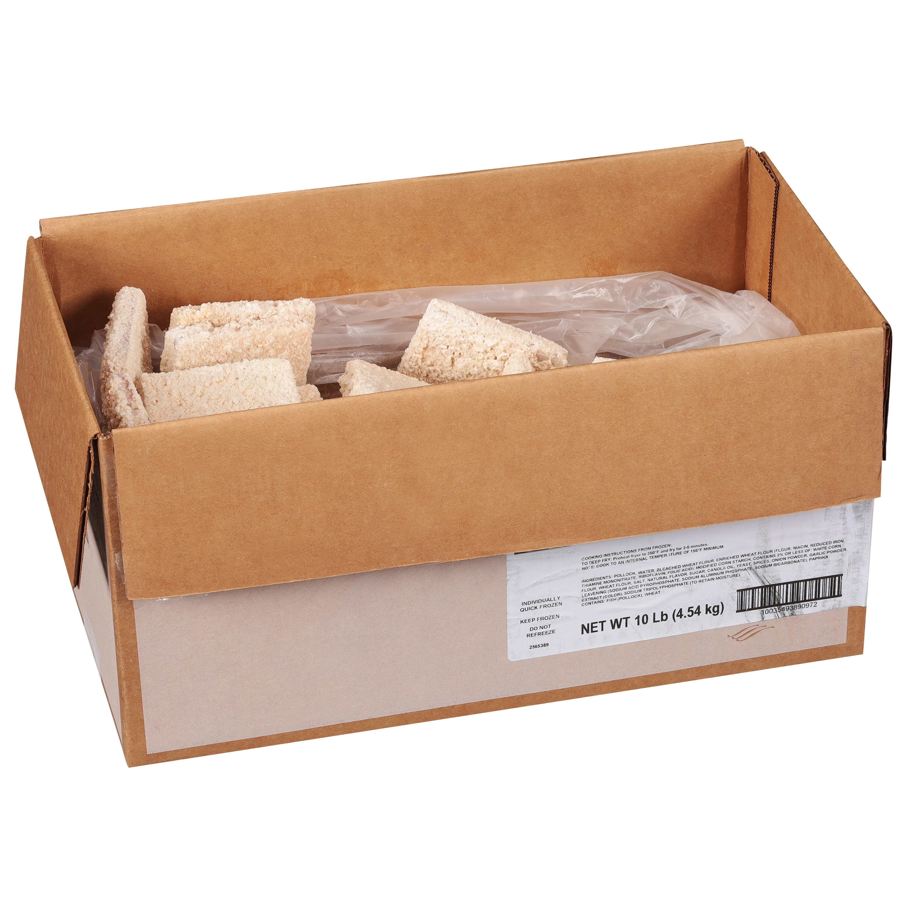 10 Lb (4.54 kg) Crunchy Raw Breaded Pollock Squares 4 oz, MSC