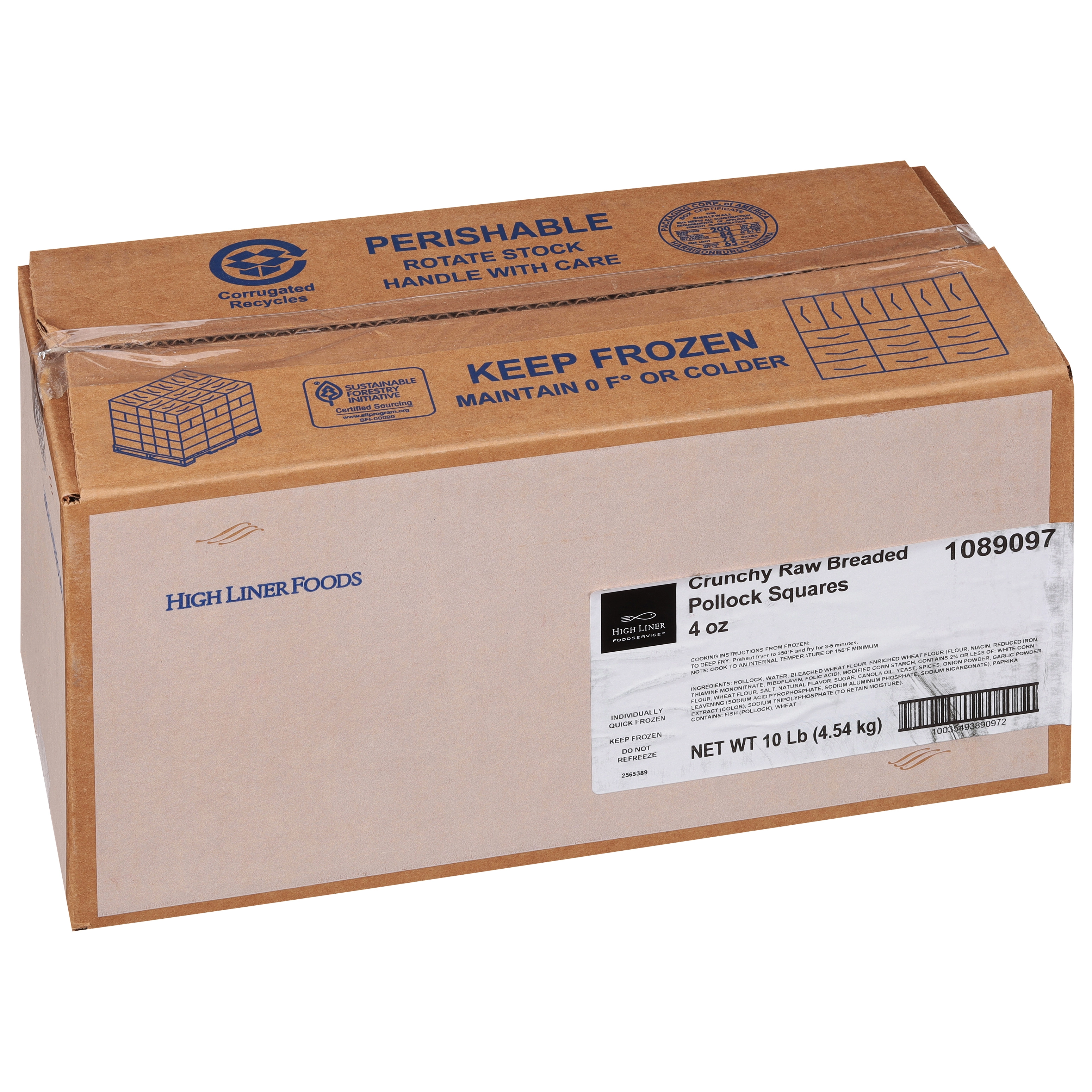High Liner Crunchy Breaded Pollock Squares feature tender, wild caught shaped Pollock coated in a delicious signature seasoned breading. The result is a pleasantly crispy bite with all the tender flakiness of this species. Each fries up in no time with excellent consistency and plate appeal for a variety of applications.