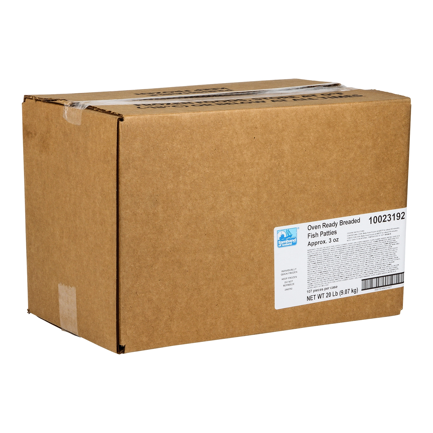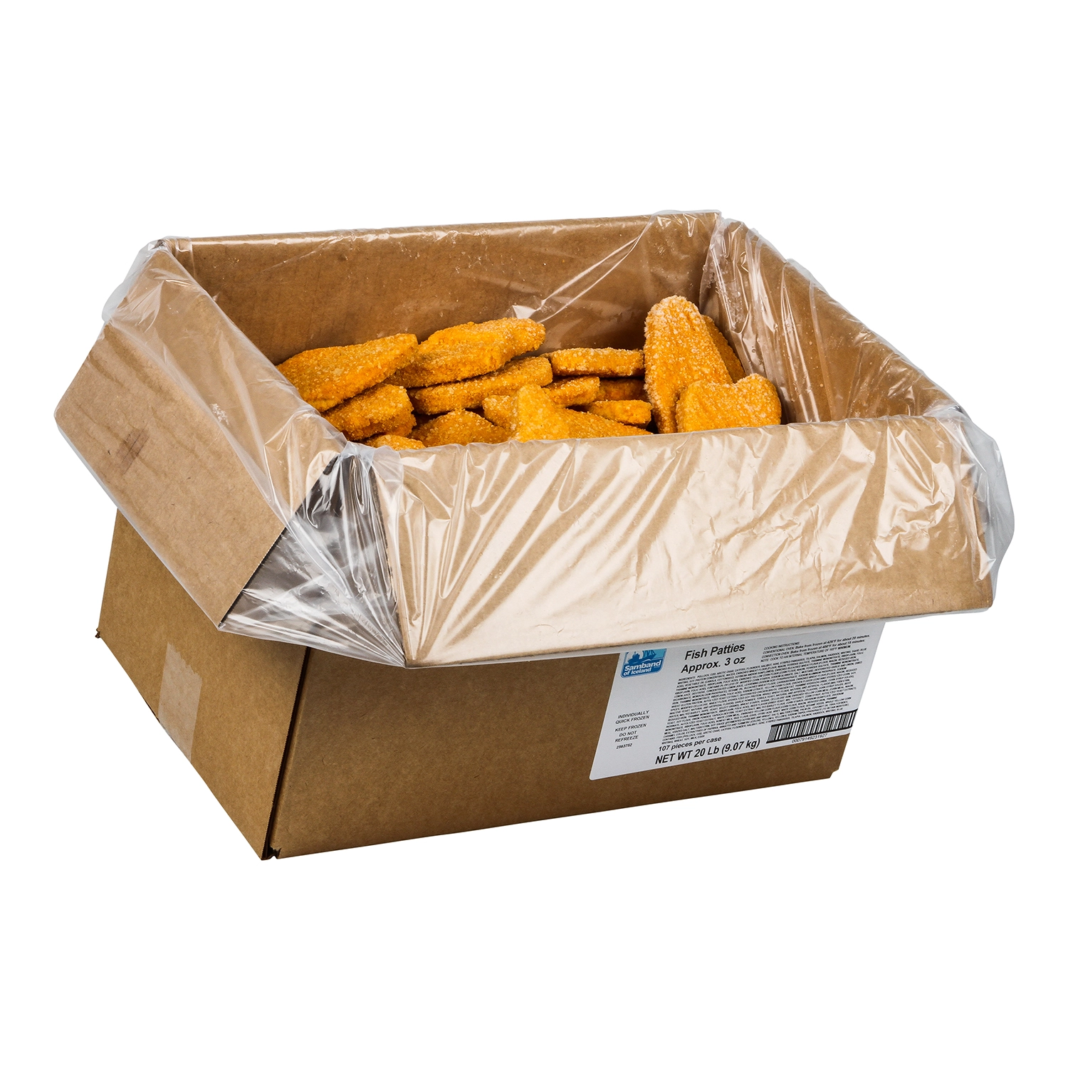 20 Lb (9.07 kg) Oven Ready Breaded Fish Patties, Approx. 3 oz