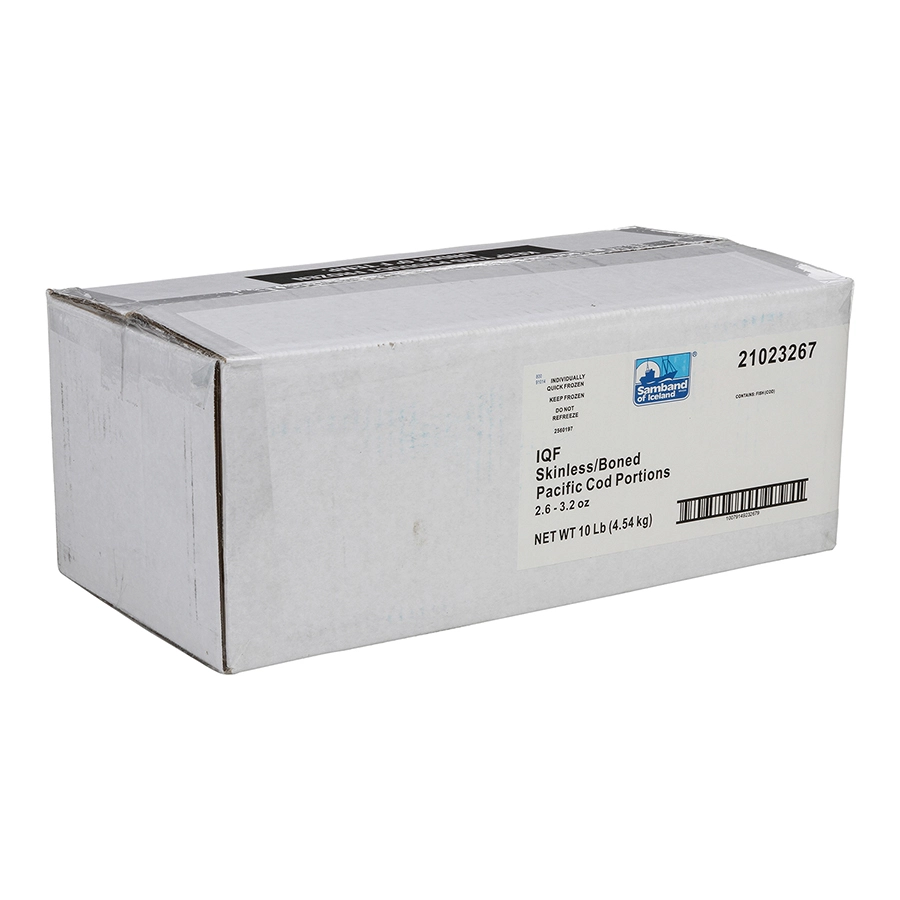 10 Lb (4.54 kg) IQF Skinless/Boned Pacific Cod Portions 2.6 - 3.2 oz