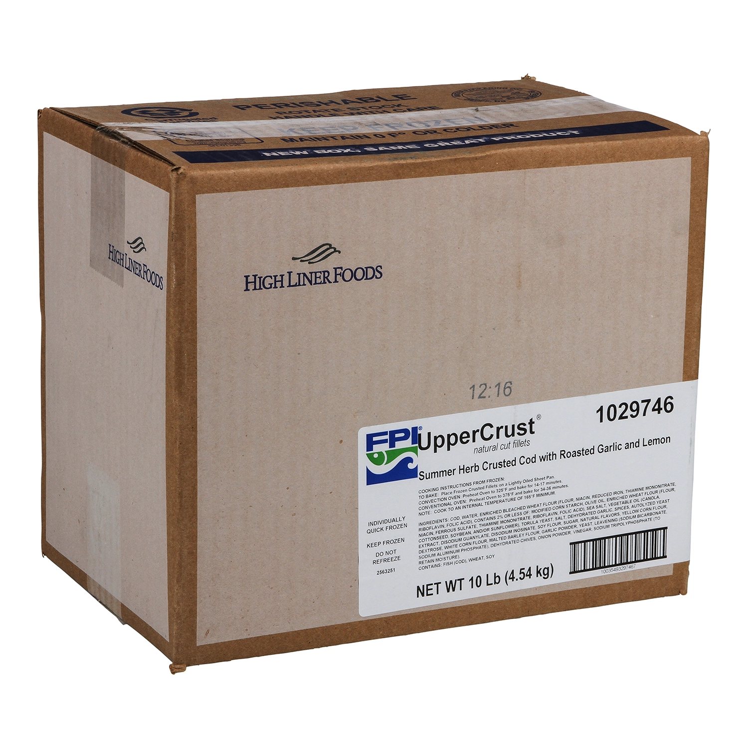 10 Lb (4.54 kg) UpperCrust Summer Herb Crusted Cod with Roasted Garlic and Lemon, Cut from Fillets, MSC