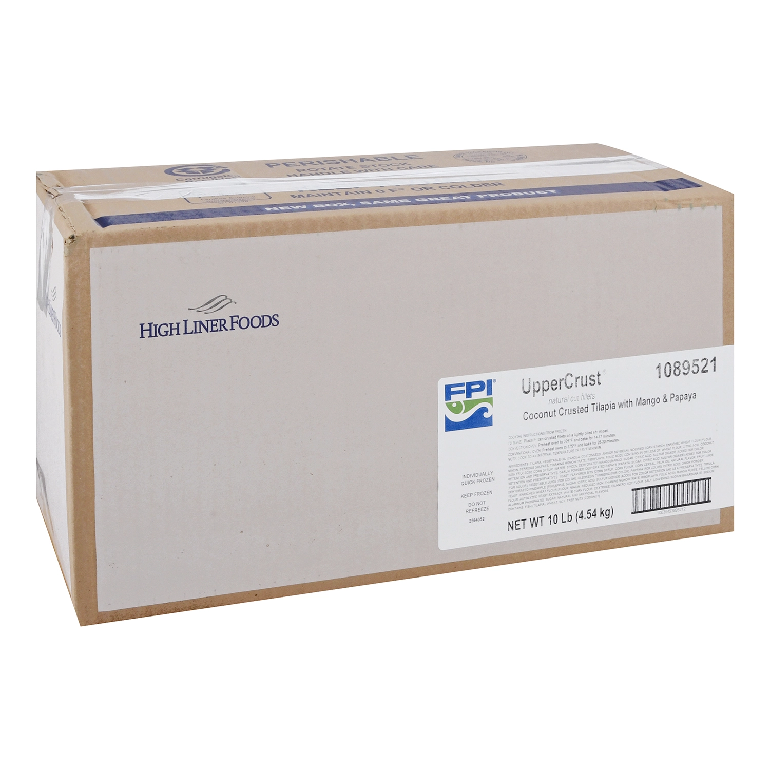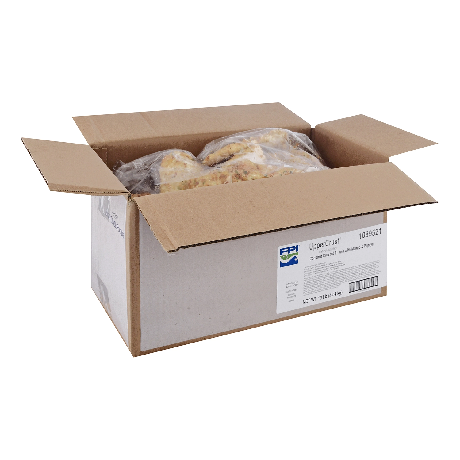 10 Lb (4.54 kg) UpperCrust Coconut Crusted Tilapia with Mango & Papaya, Natural Cut Fillets