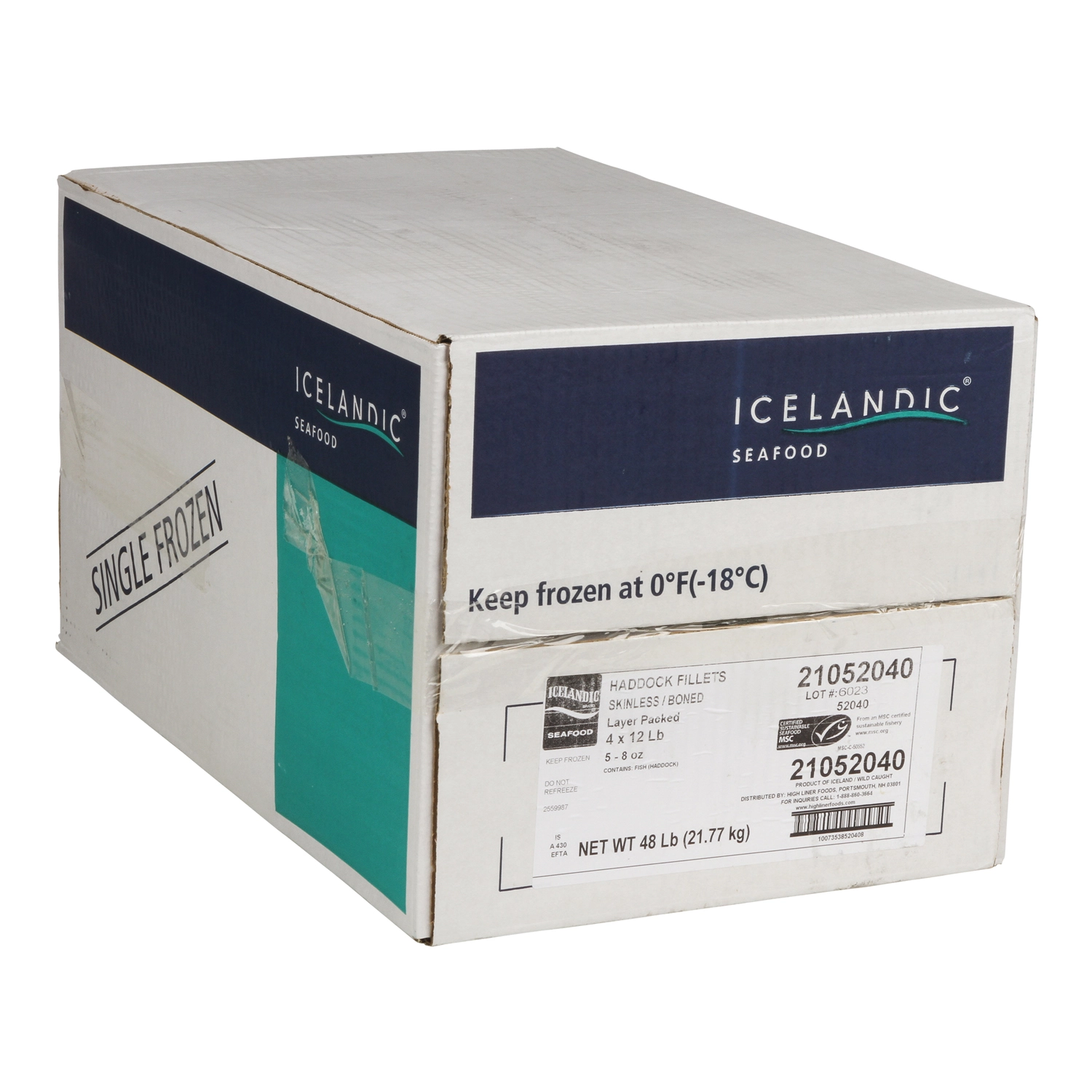 48 Lb (21.77 kg) Frozen-At-Sea Haddock Fillets 5 - 8 oz, 4 x 12 Lb, MSC