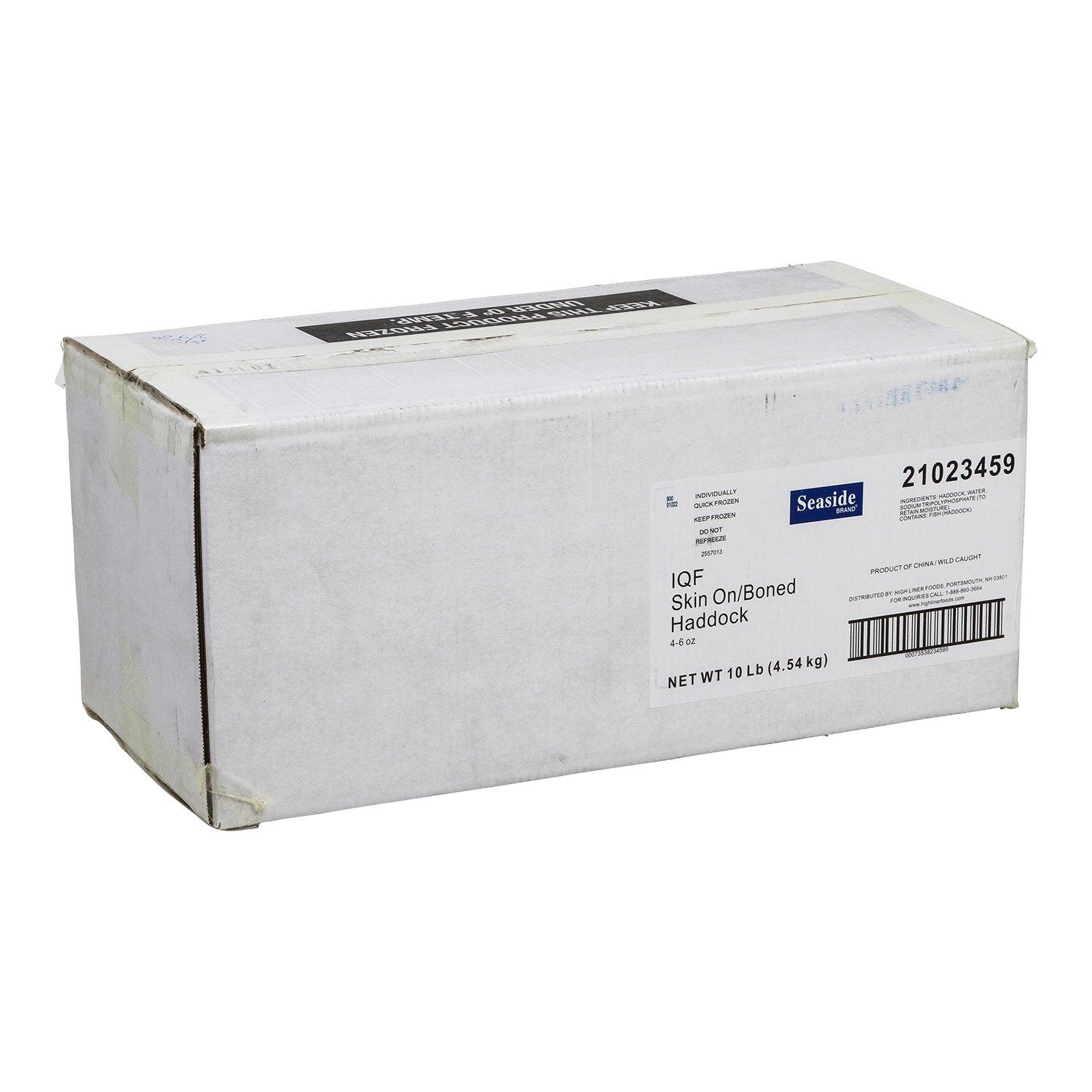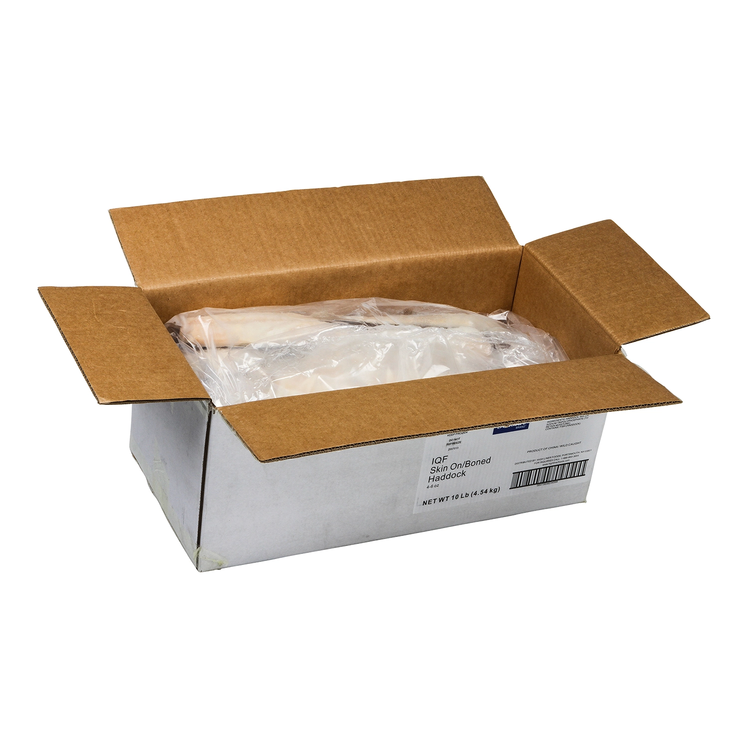 10 Lb (4.54 kg) IQF Skin On / Boned Haddock 5 - 6oz