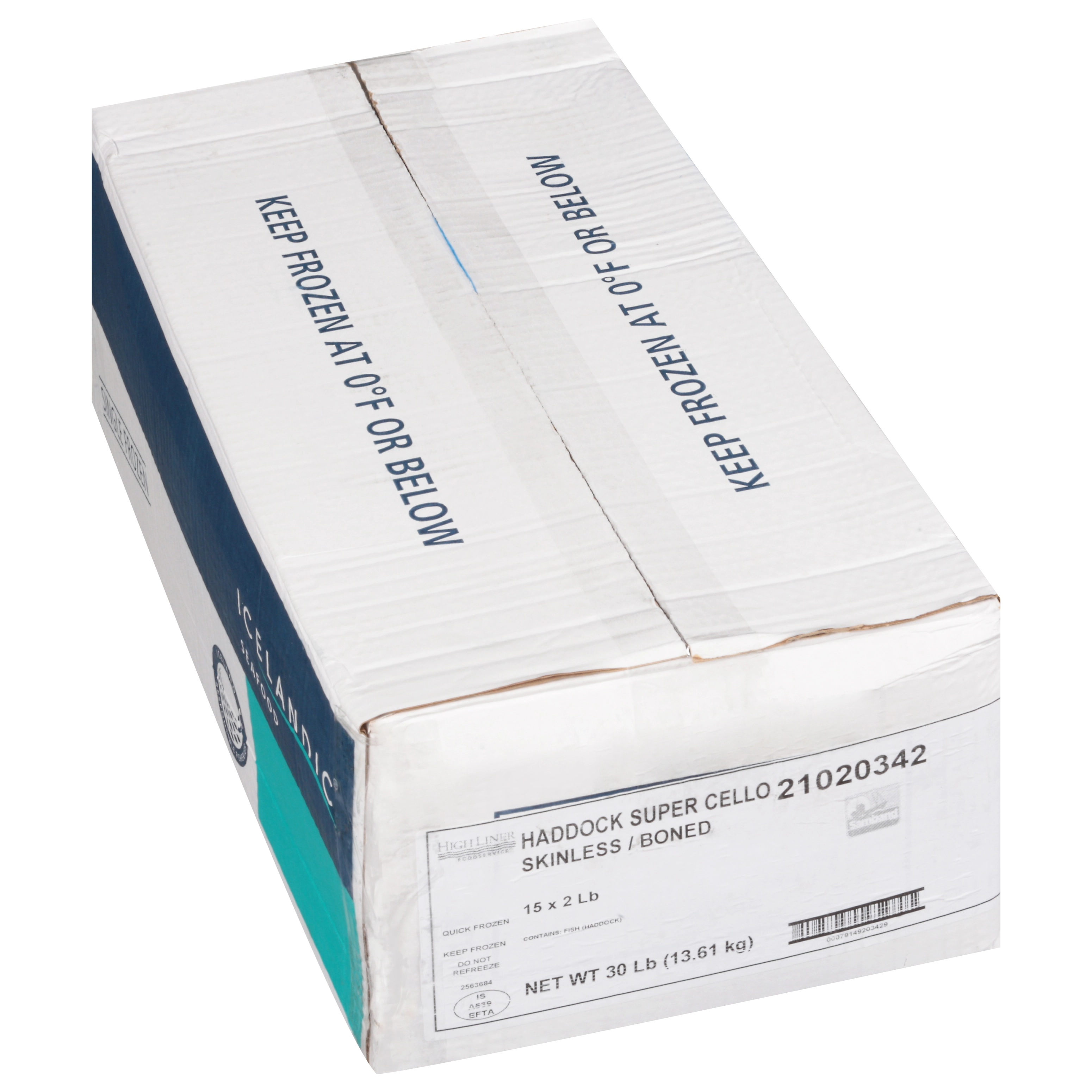 30 Lb (13.61 kg) Haddock Super Cellos, Skinless / Boned, Single Frozen, 15 X 2 Lb, MSC