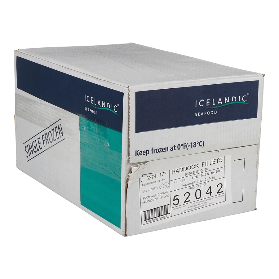 48 Lb (21.77 kg) Frozen-At-Sea Haddock Fillets 16 - 32 oz, 4 x 12 Lb, MSC
