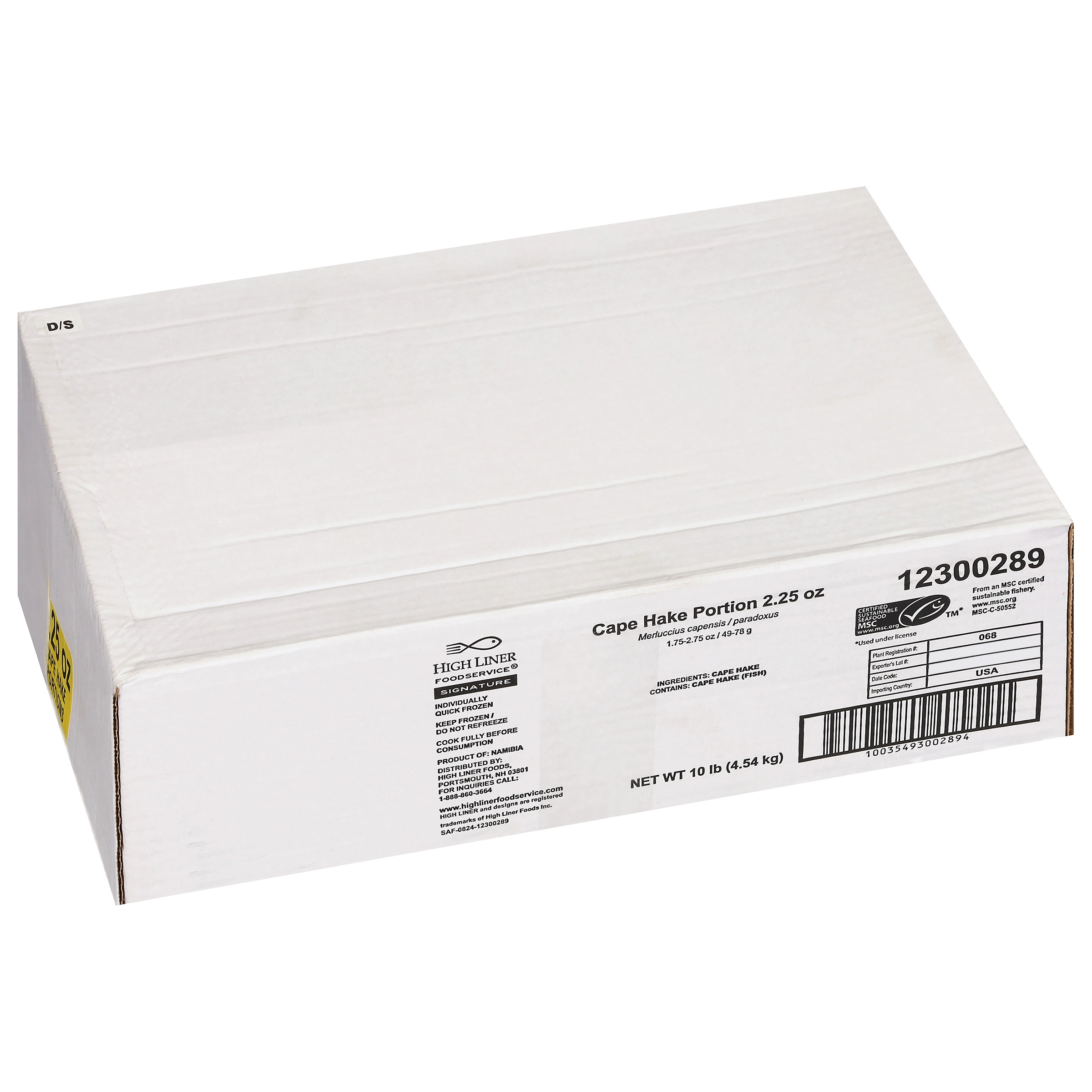 10 Lb (4.54 kg) Cape Hake Portion 2.25 oz, 1.75-2.75 oz / 49-78 g, MSC